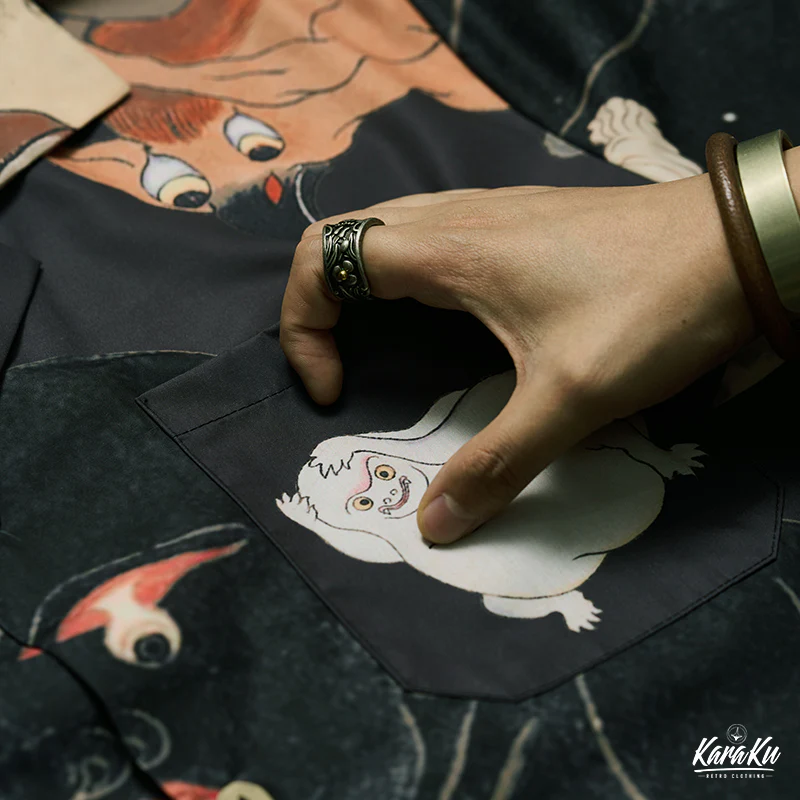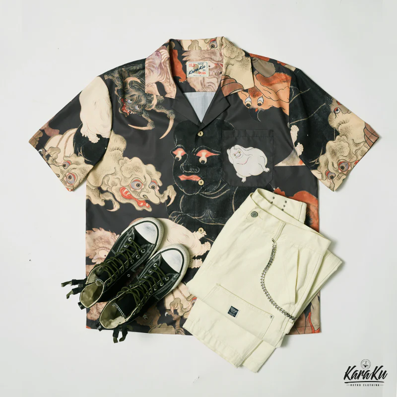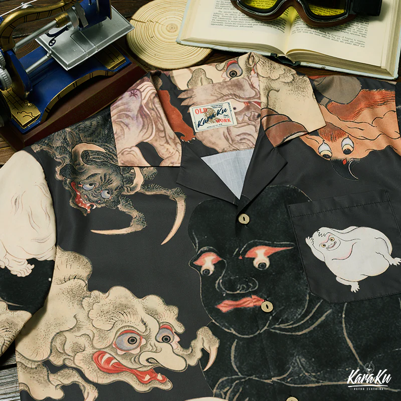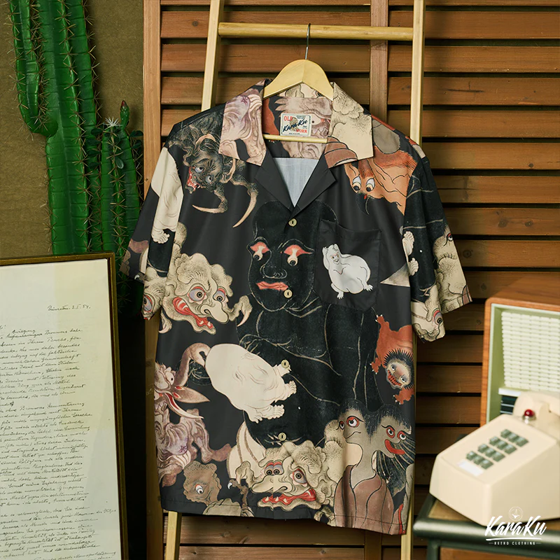 日本の江戸時代から伝わる妖怪の神秘的な世界を探求する、江戸時代の妖怪図鑑の描画をテーマにした、夏のためのハワイアンシャツ。このシャツは、日本の伝統的な妖怪のイメージと、ハワイアンシャツのリラックスしたスタイルが見事に融合されており、独自のファッションステートメントを提供します。江戸時代の妖怪の描画は、その生き生きとした表現と美しい色彩で、着る人を不思議な世界へと導きます。日常のコーディネートに取り入れるだけで、オシャレ度がアップすること間違いなしです。着るだけで、歴史や文化に触れることができる贅沢なアイテムです。