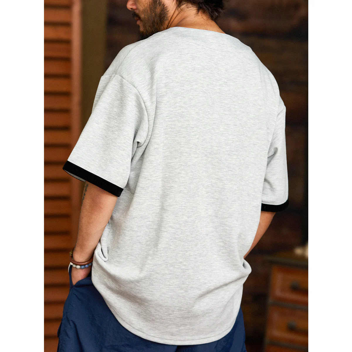 肩を落とした幅広なボックスシルエットで、サラッと羽織るだけで雰囲気のあるスタイリングが完成。