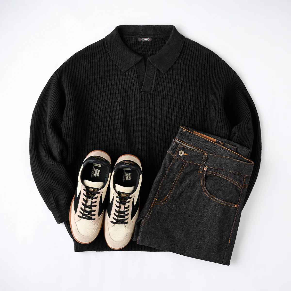 秋冬シーズンの着こなしにレトロなニュアンスを添える新作ポロネックリブ編みニットが登場。