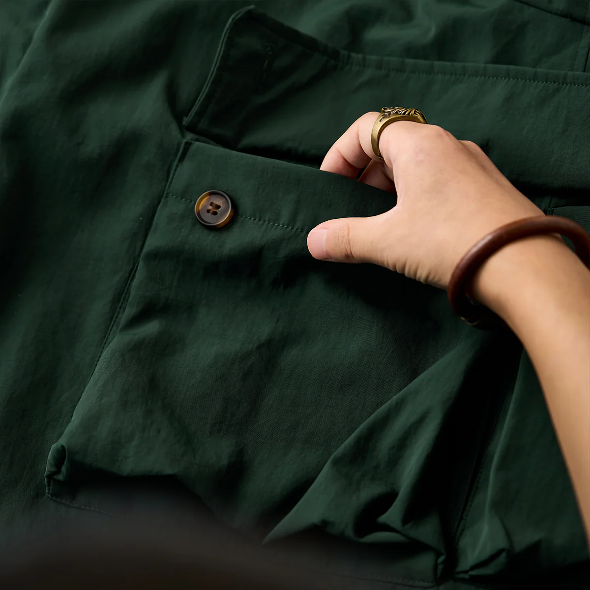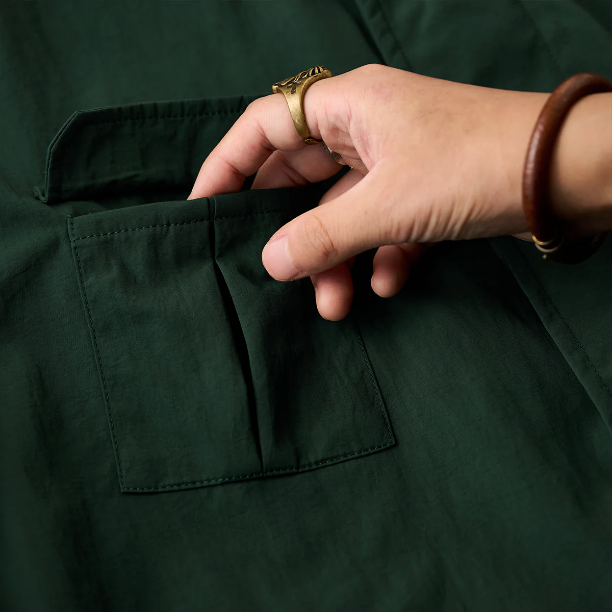 シワになりにくいマットな質感のナイロン100%の生地を使用。肌触りもサラリとした生地感に仕上がっています。光沢感も抑え、スタイリッシュな印象に。