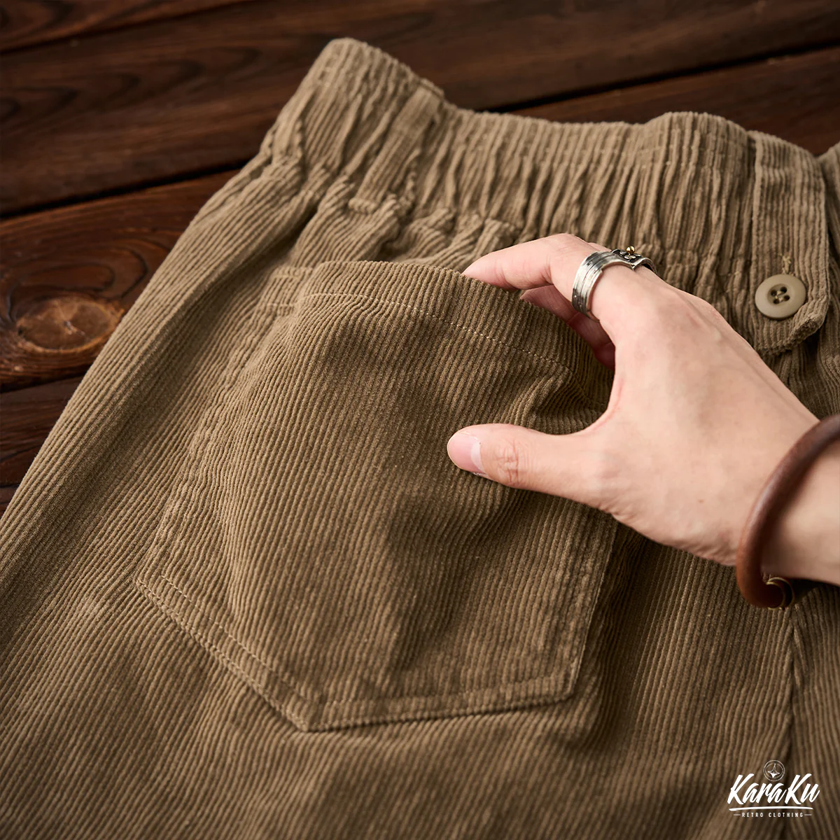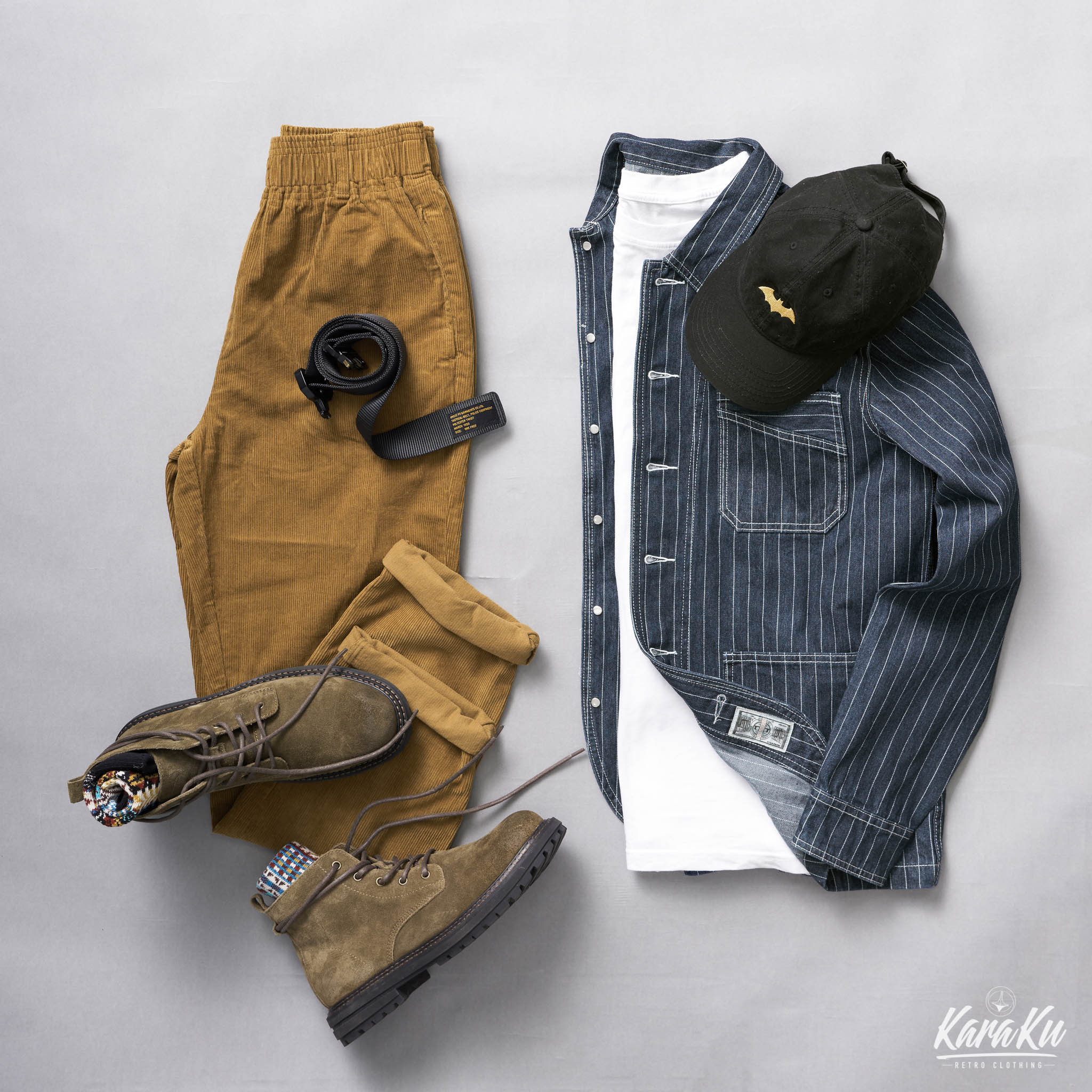 太畝と細畝が交互に繰り返されたヴィンテージ感のあるコーデュロイ素材を使用しています。