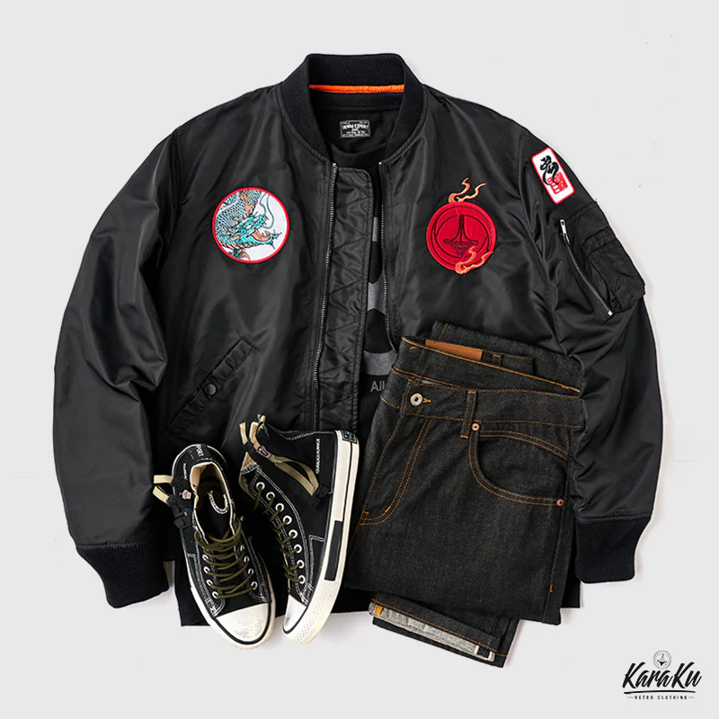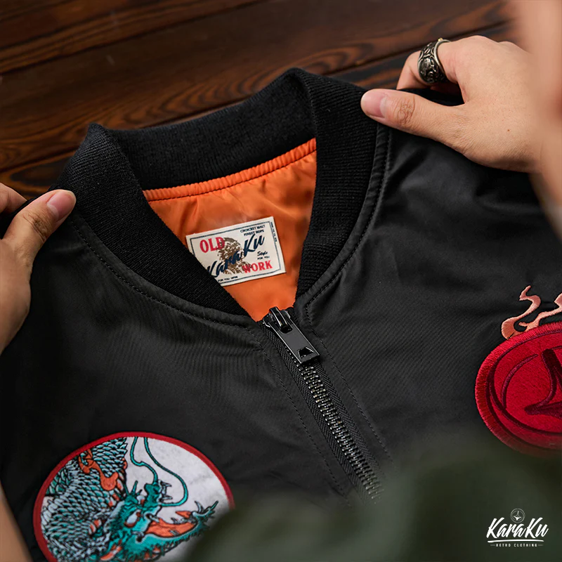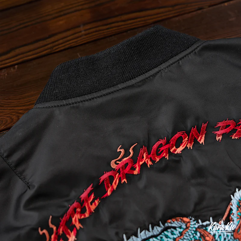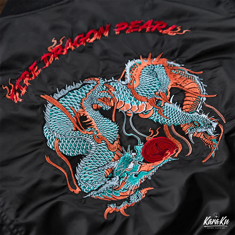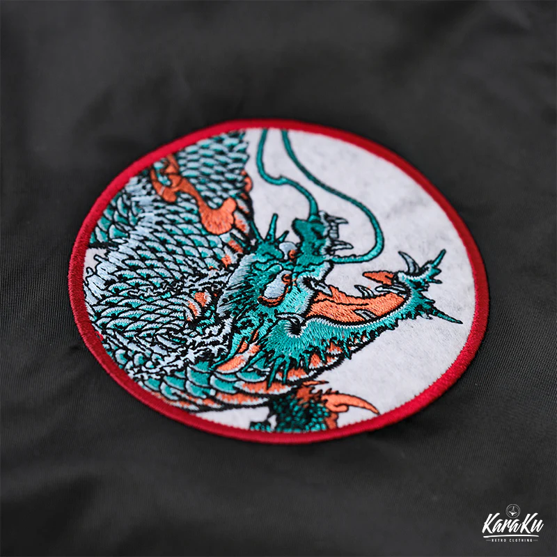 • 「KaraKux中坪宏太」咆哮している緑色の龍刺繡入り 浮世絵風フライトジャケット