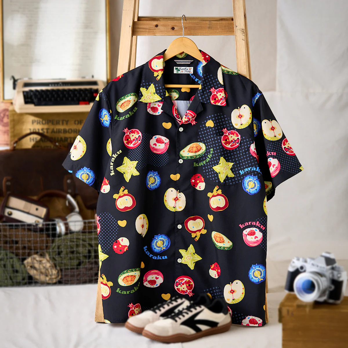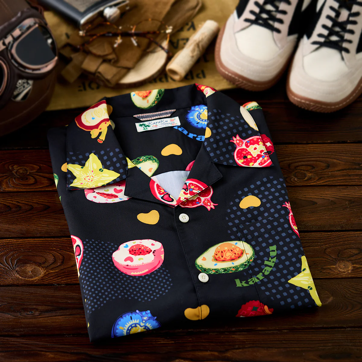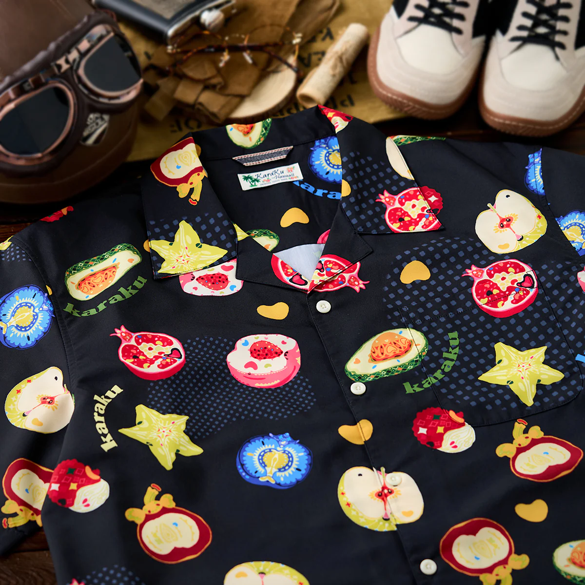 • ポップアート風 南国フルーツデジタルプリントアロハシャツ
