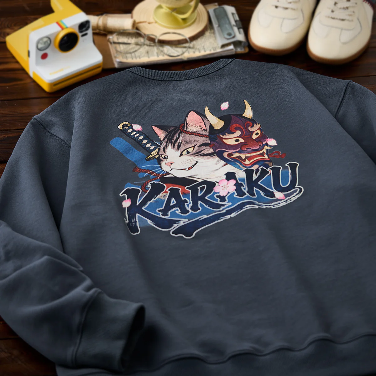 「KARAKU」と大きく書かれたロゴがデザイン全体を引き締めています。手描き風のアートスタイルで、ヴィンテージ感やレトロな雰囲気を醸し出しています。