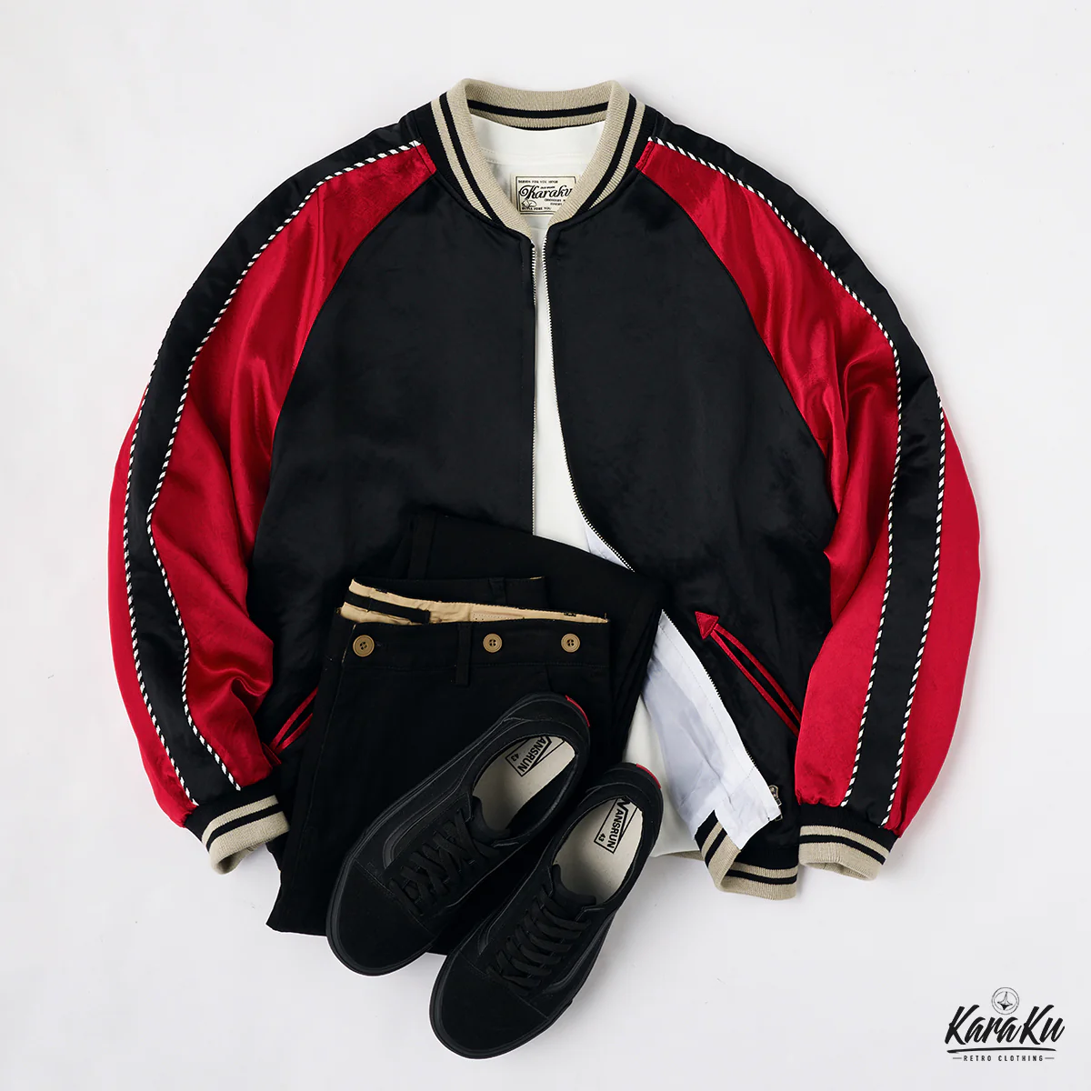 神奈川県横須賀市にあるドブ板通りが発祥の地とされる日本のファッションアイテム「スカジャン」とは戦後間もない頃に日本駐留の米兵達が、 その記念に鷲・虎・龍など、自分たちの 所属していた部隊や基地などを自分たちのジャケットに刺繍したのが始まりです。