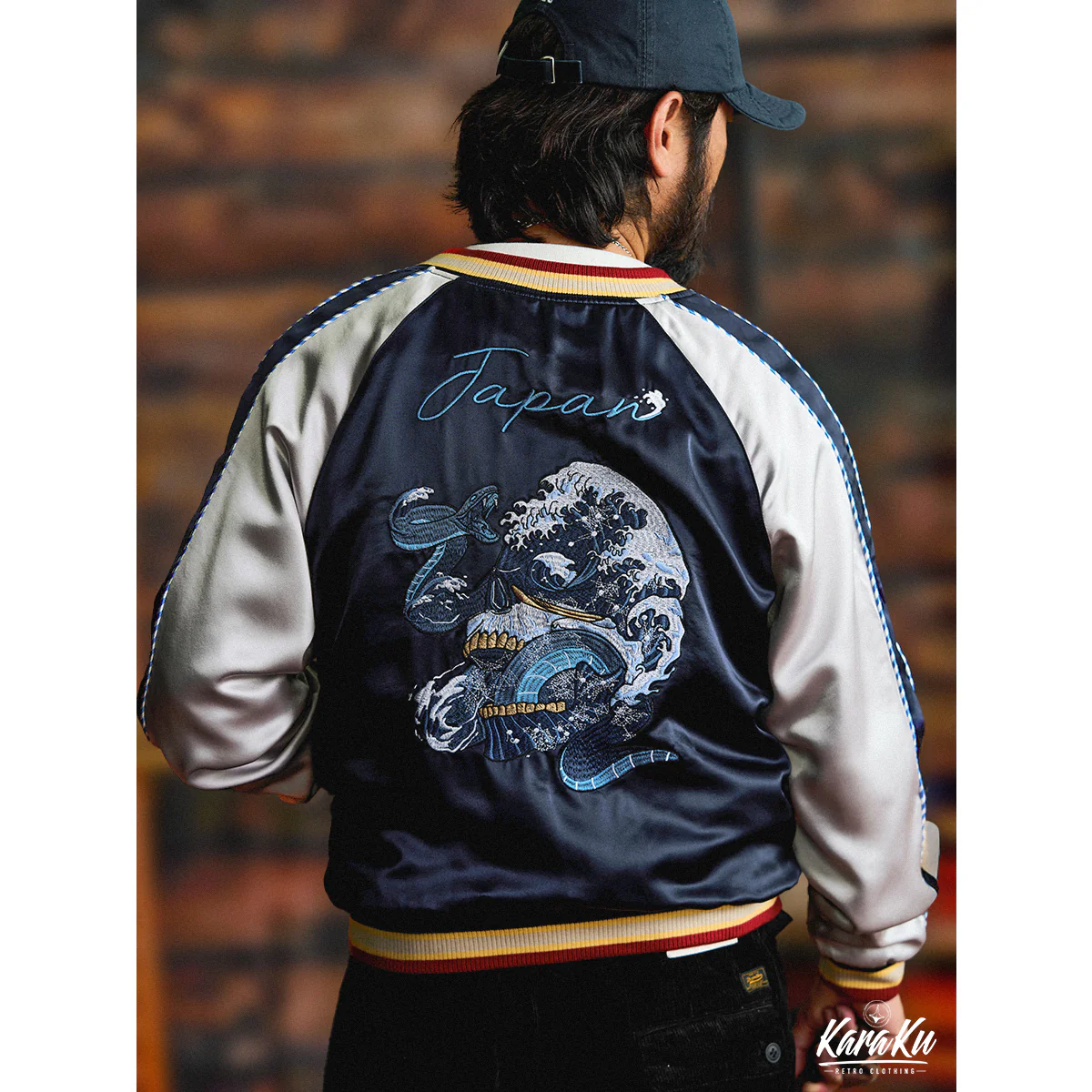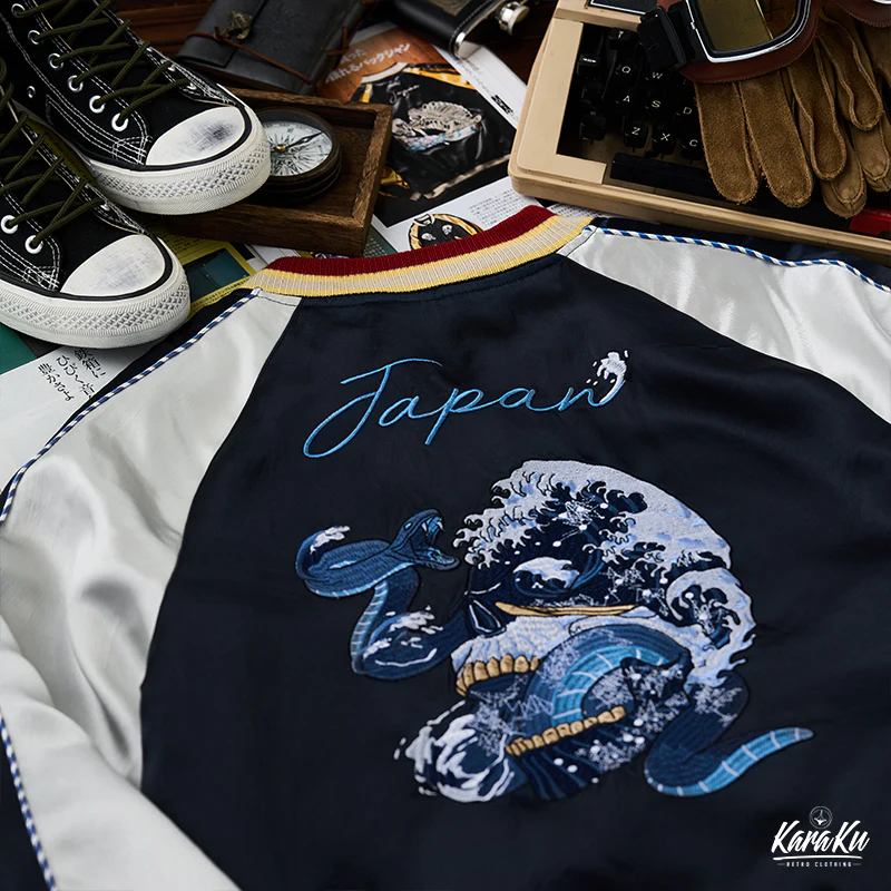 横須賀「ドクロ、蛇と波」浮世絵刺繡入りスカジャン