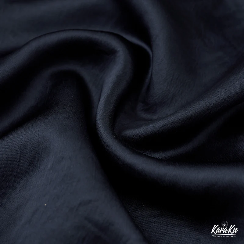 アセテート繊維とポリエステルの混紡した素材で仕上がって、すべすべとした手触り、美しい光沢があるのは魅力の一つ。湿気を放散しやすく速乾性に優れている、シワになりにくく扱いやすいのが特徴。