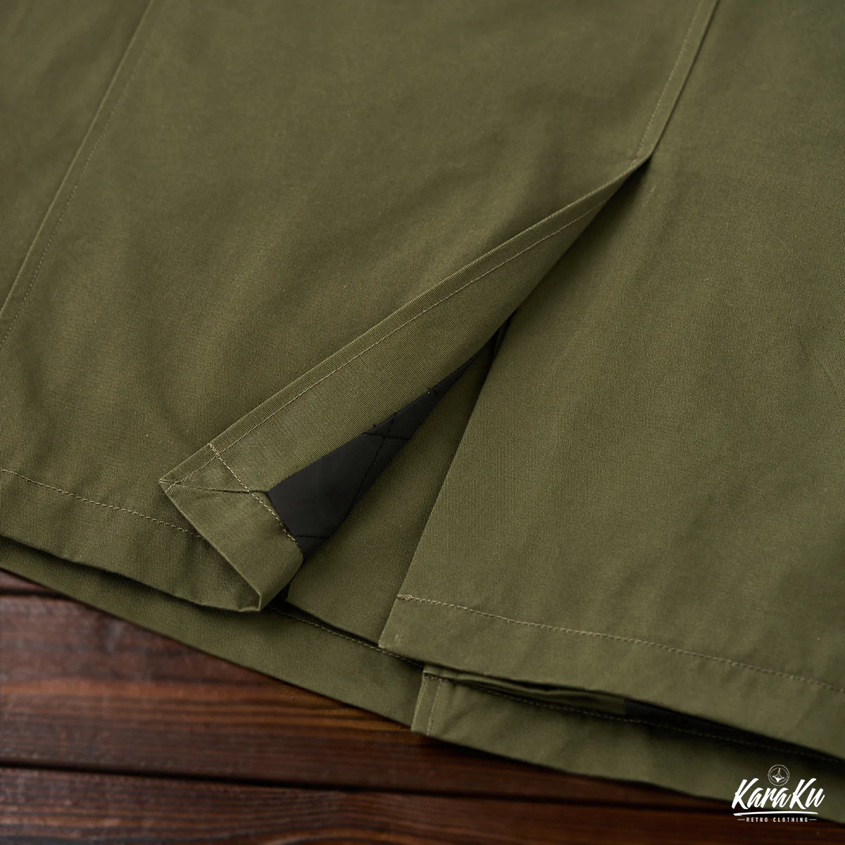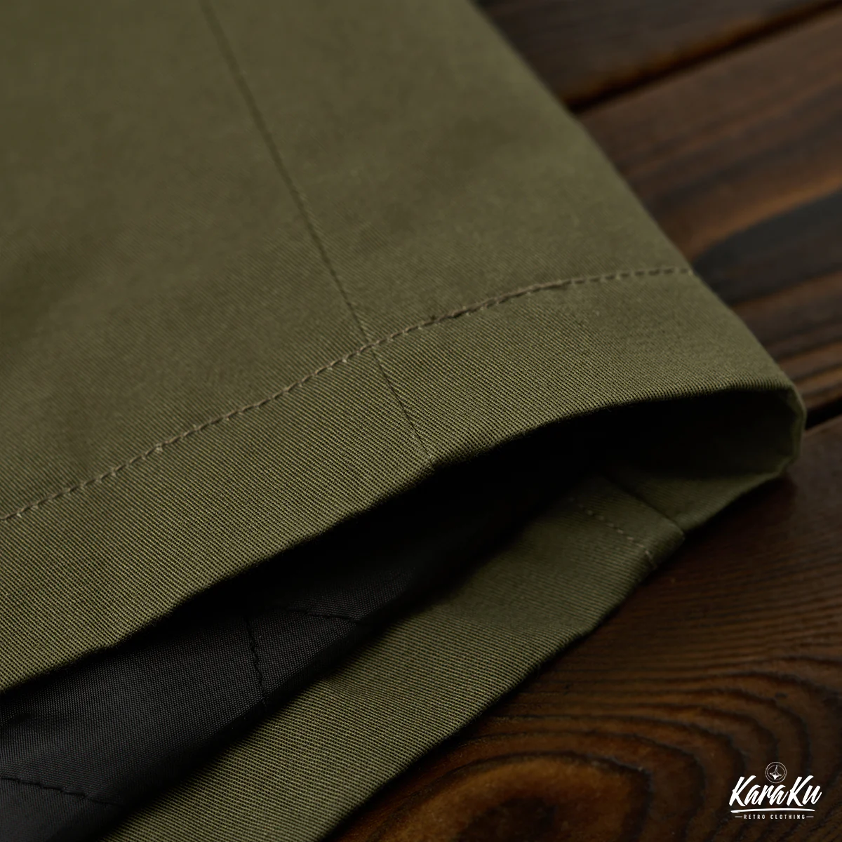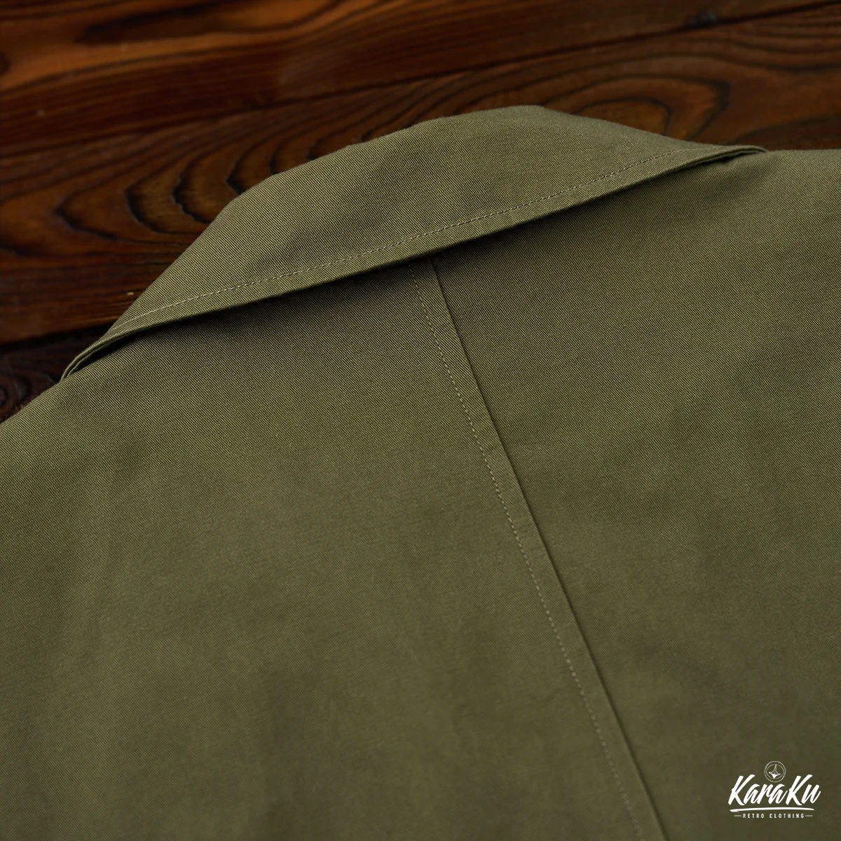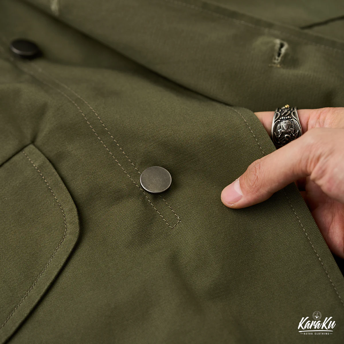 本アイテムは、クラシックなトレンチスタイルにモダンなアレンジを加えた一着です。フロントは斜めにデザインされた前立てで、ユニークな印象を与えると同時に風を防ぎ、寒さから身を守ります。首元にはチンストラップを装備し、しっかりと固定することで冷気をシャットアウト。スタイリッシュなデザインでありながら、実用性も兼ね備えています。ミリタリーテイストと洗練されたシルエットが絶妙にマッチし、都会的なスタイリングを引き立てます。