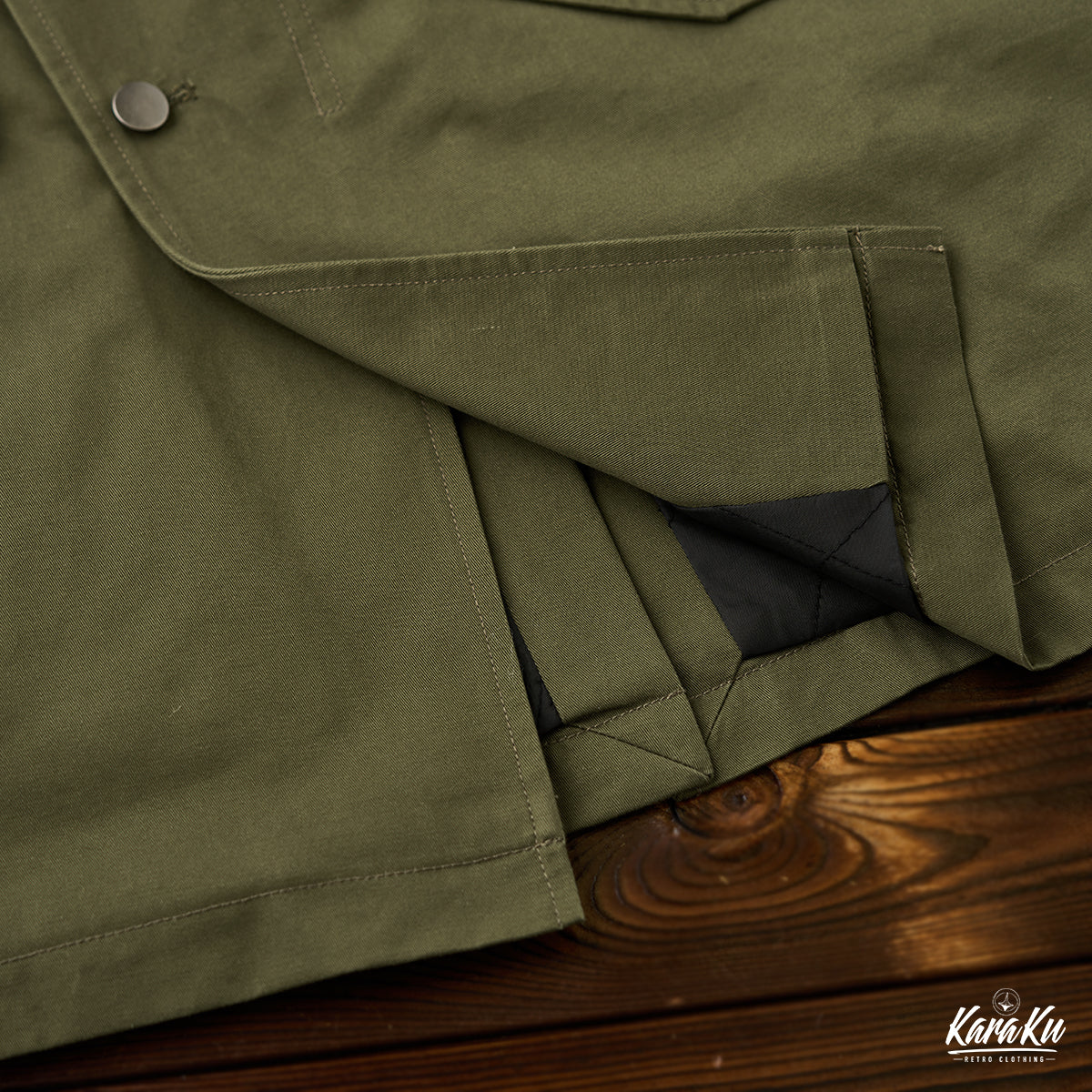 コットン素材を使用し、柔らかさと丈夫さを併せ持った質感がポイント、着ていてとても気持ちが良い。ウォッシュ加工がされ、素材は自然の色落ちとユーズド感で現れ、ビンテージ感も満載。また裏中綿があることで、寒い季節でも体温をしっかりと保ち、快適な着用感を提供します。