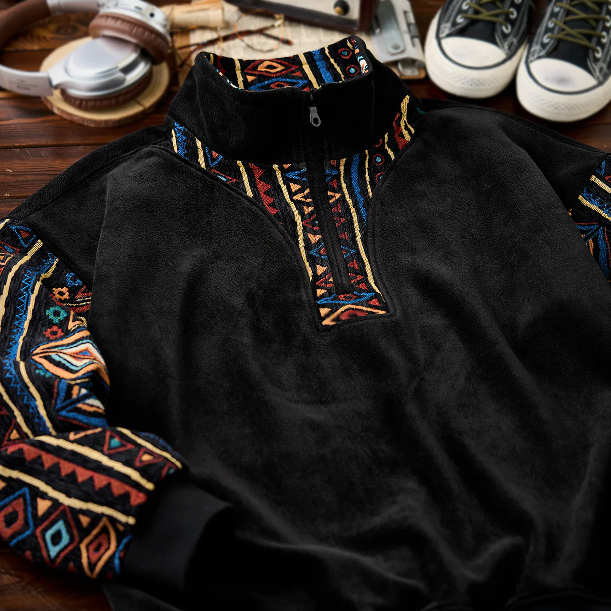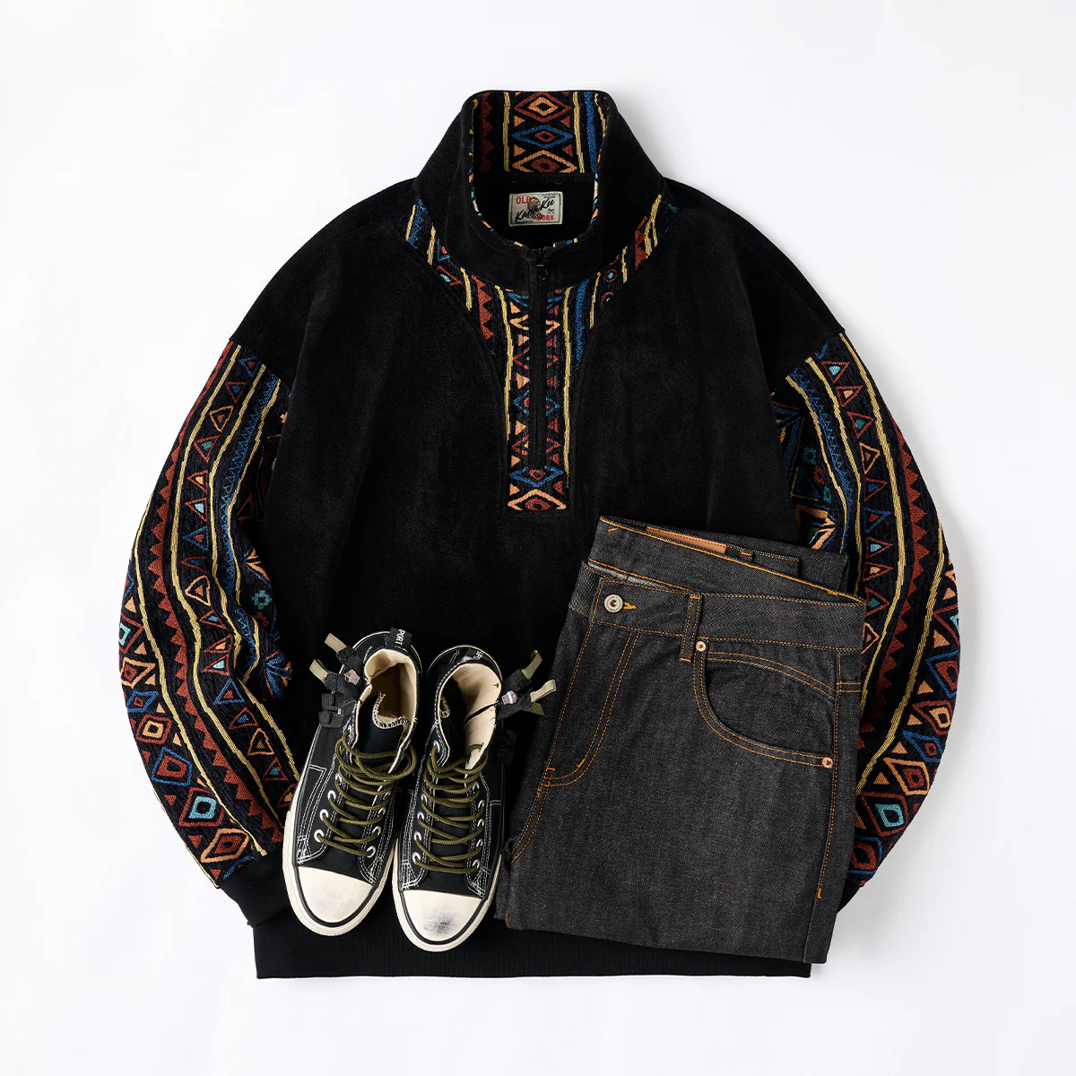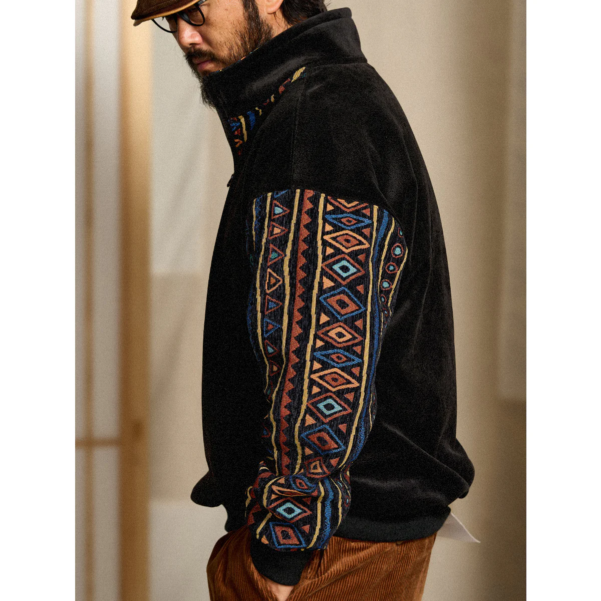 特徴:ハーフジップ/エスニック柄コンビ