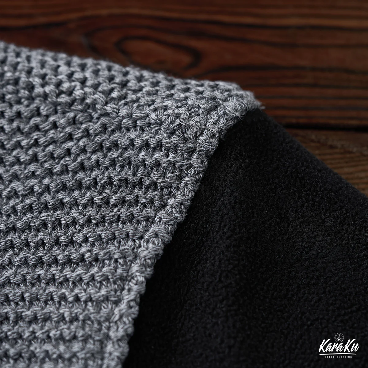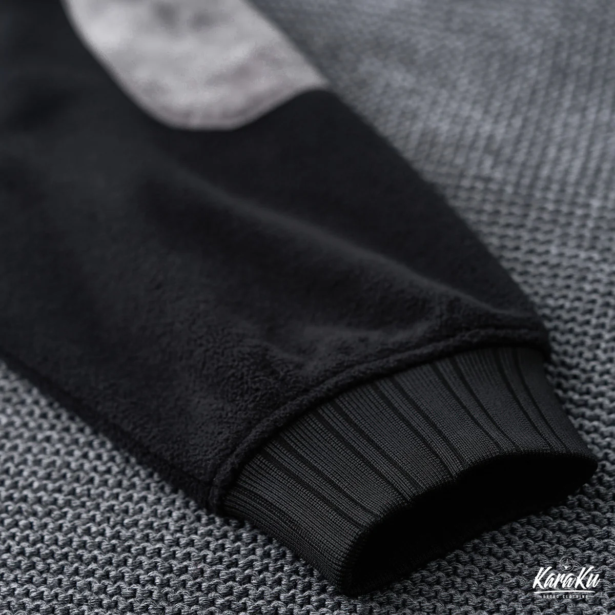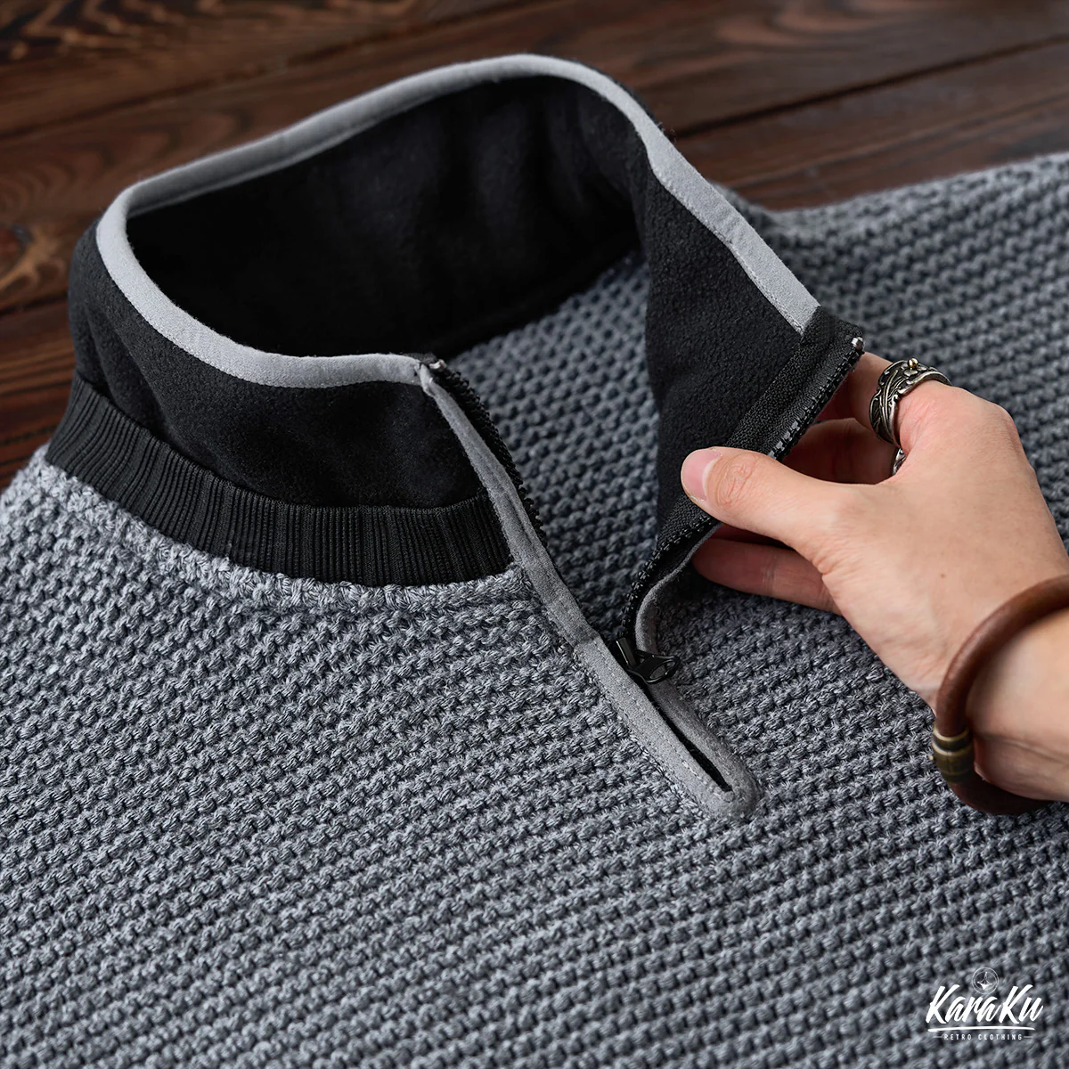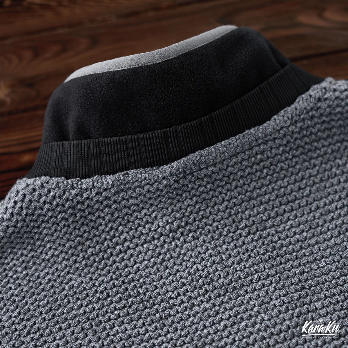 • 肘パッチ パイナップルパイルニット&フリース切替スタンドカラースウェット