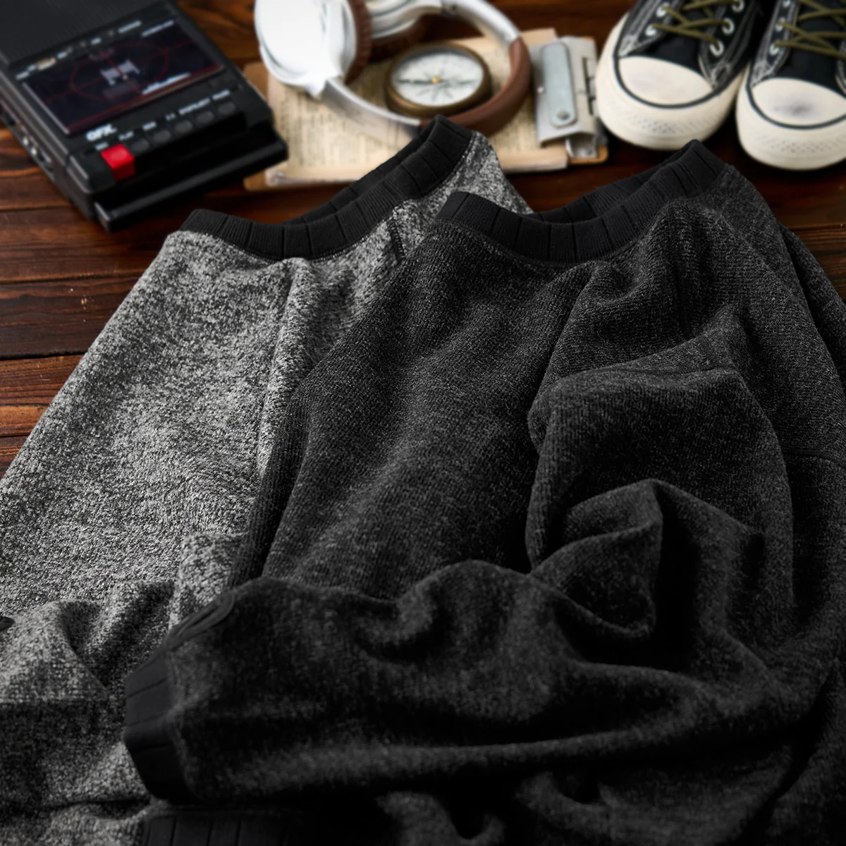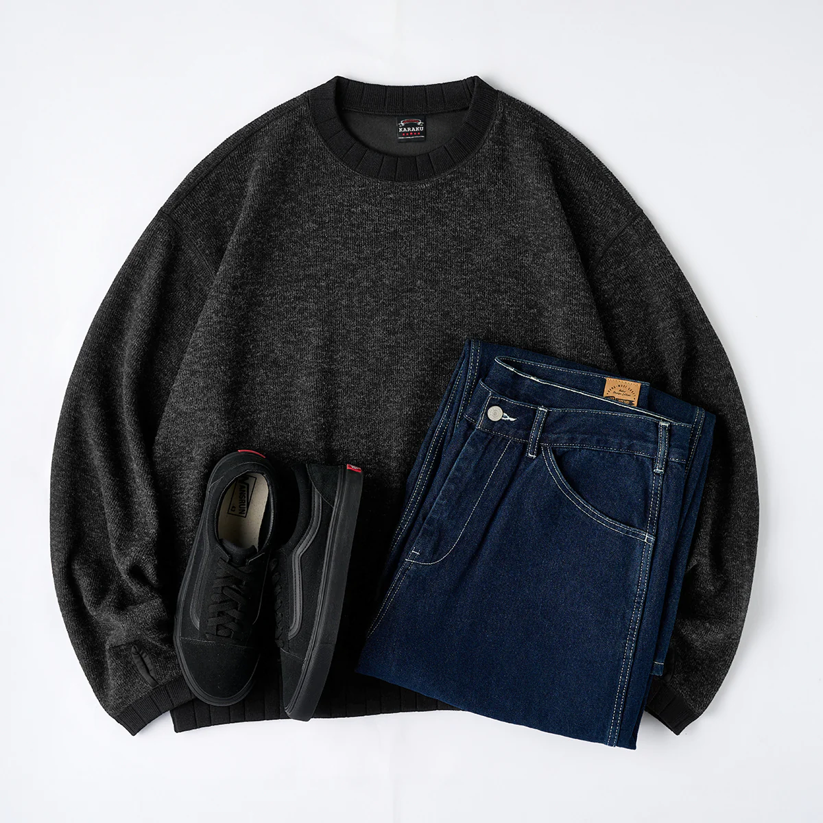 デニムやチノパンなどのカジュアルなアイテムと相性が良い。シャツやタートルネックとの重ね着に適して、秋冬のコーディネートに活躍しそう。