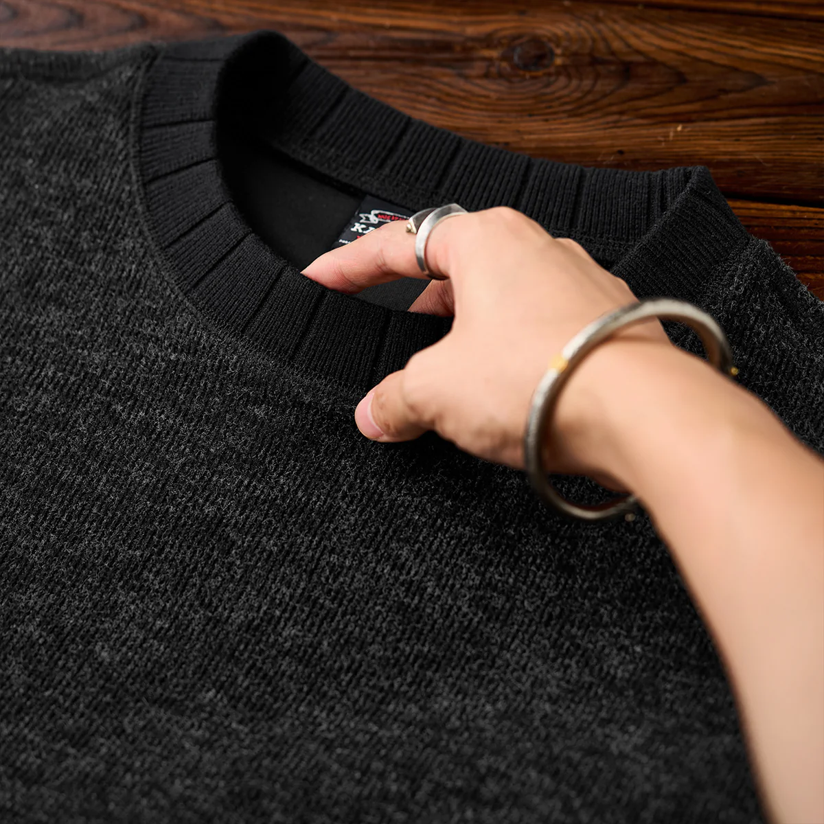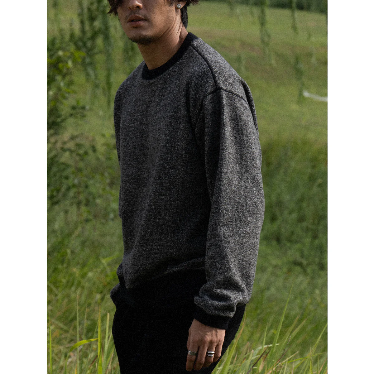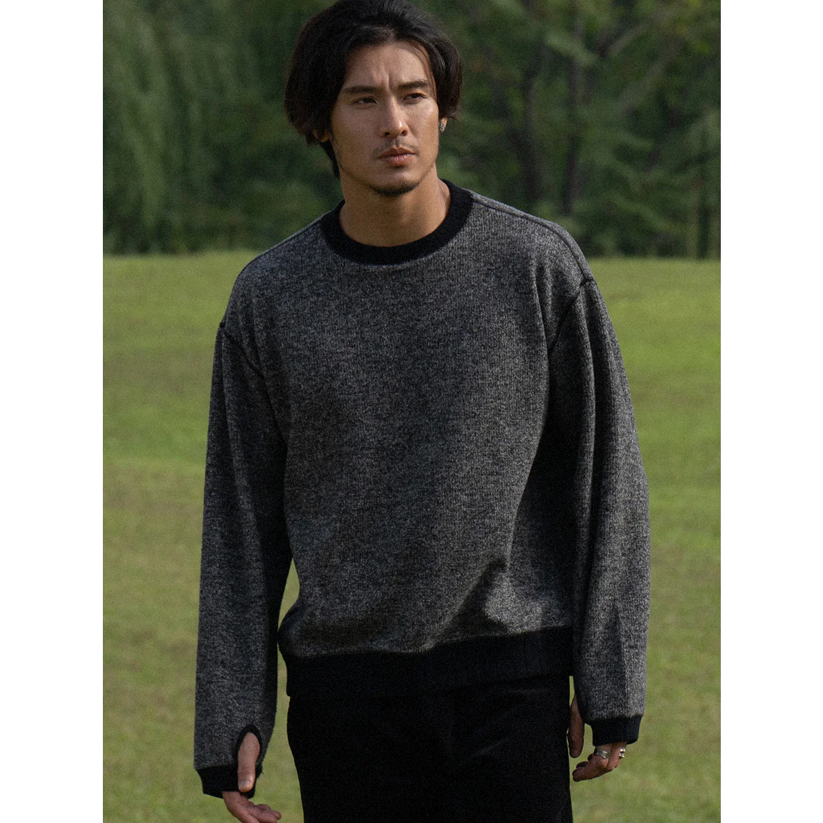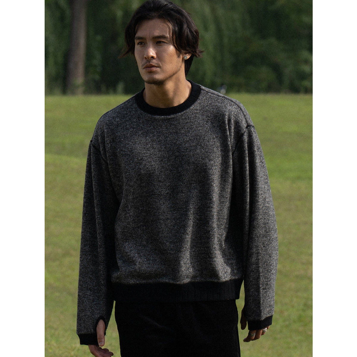 袖先サムホール 微起毛テクスチャーニットスウェット