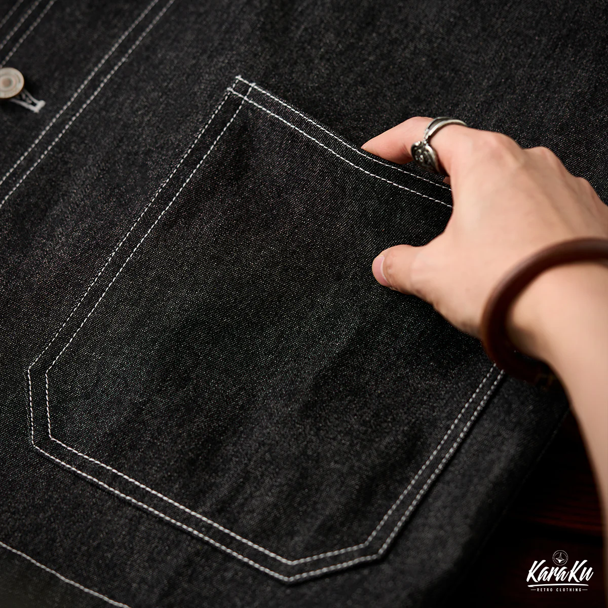 厚みのあるデニム生地が使用されて、より耐久性があり、ワークウェアらしい重厚感を演出。  ウォッシュ加工によって、柔らかな風合いとヴィンテージ感を出す。