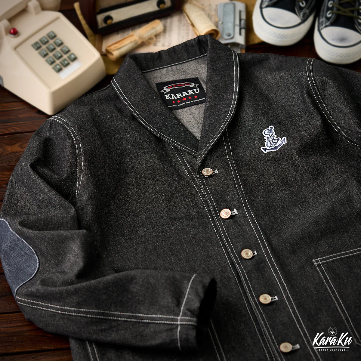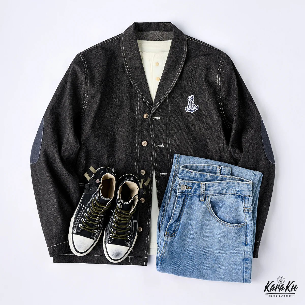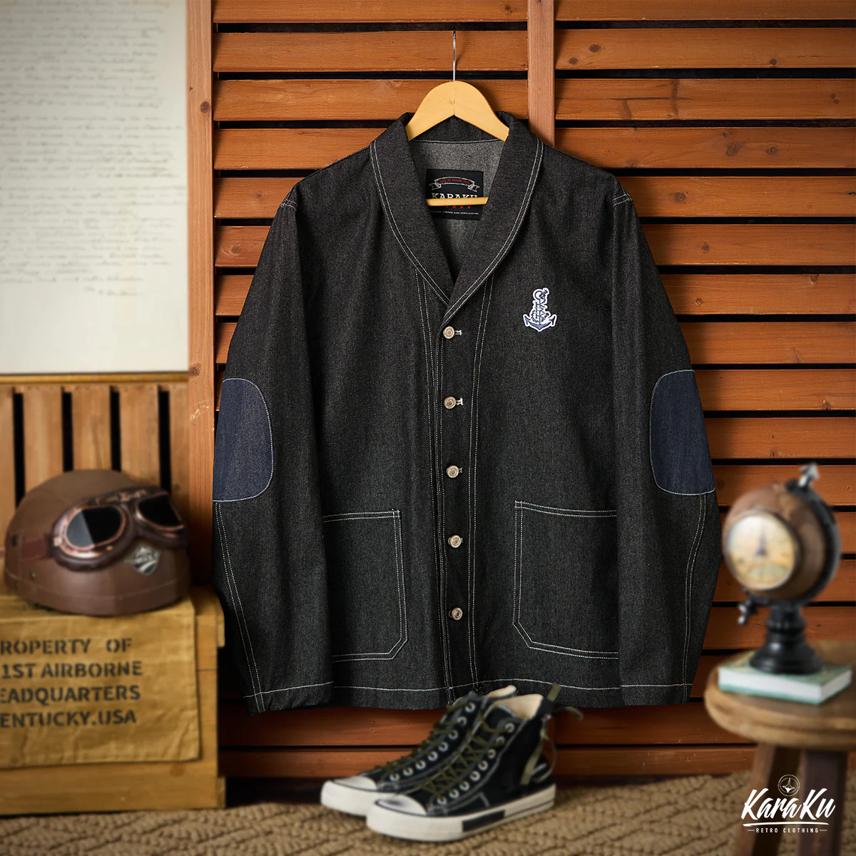 • 肘パッチ イカリ刺繍ショールカラージャケット