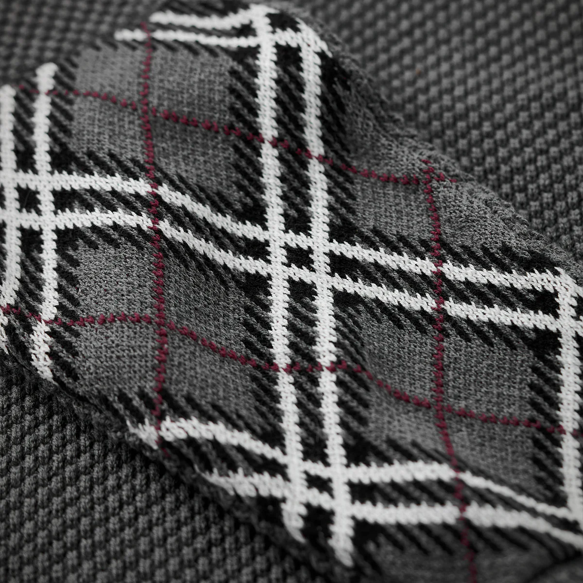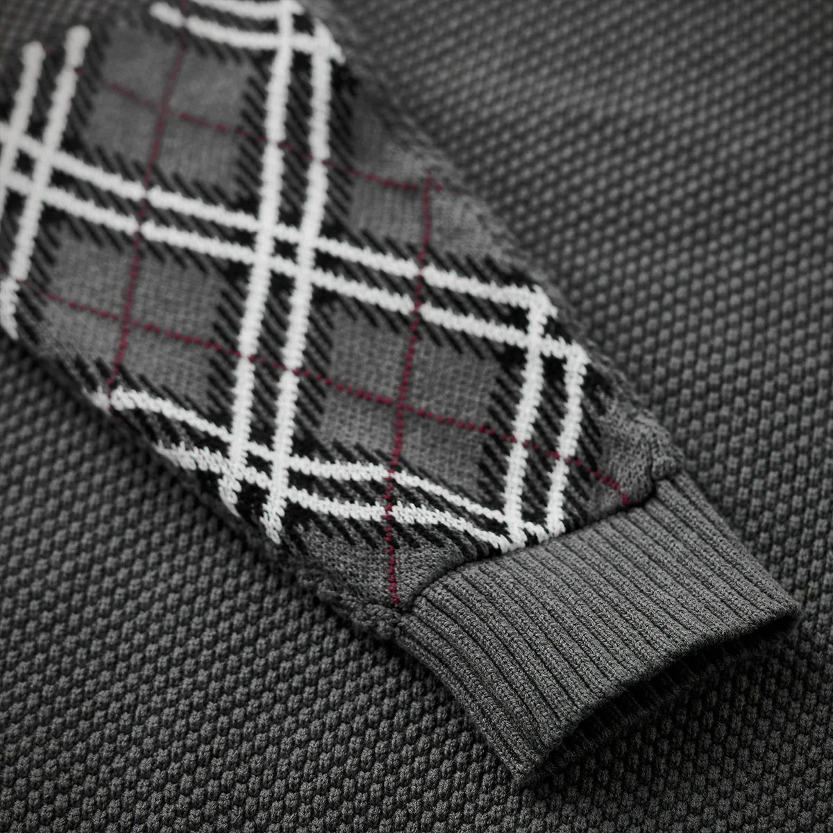 • 肘・チェック柄ジャカード織り切替 パイナップル織りニットセーター