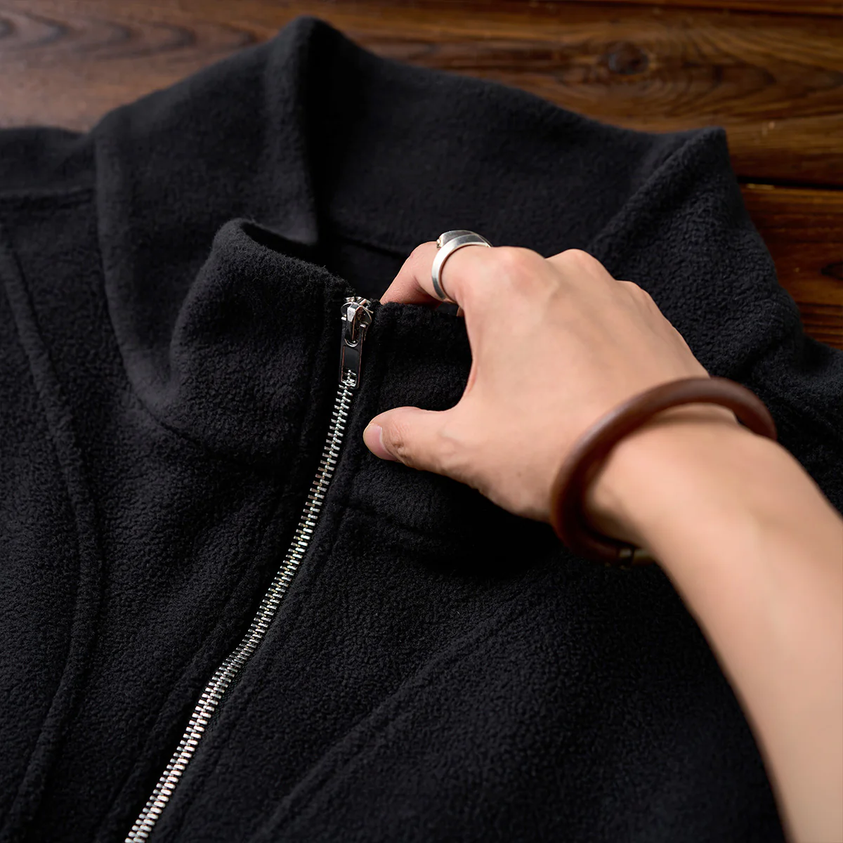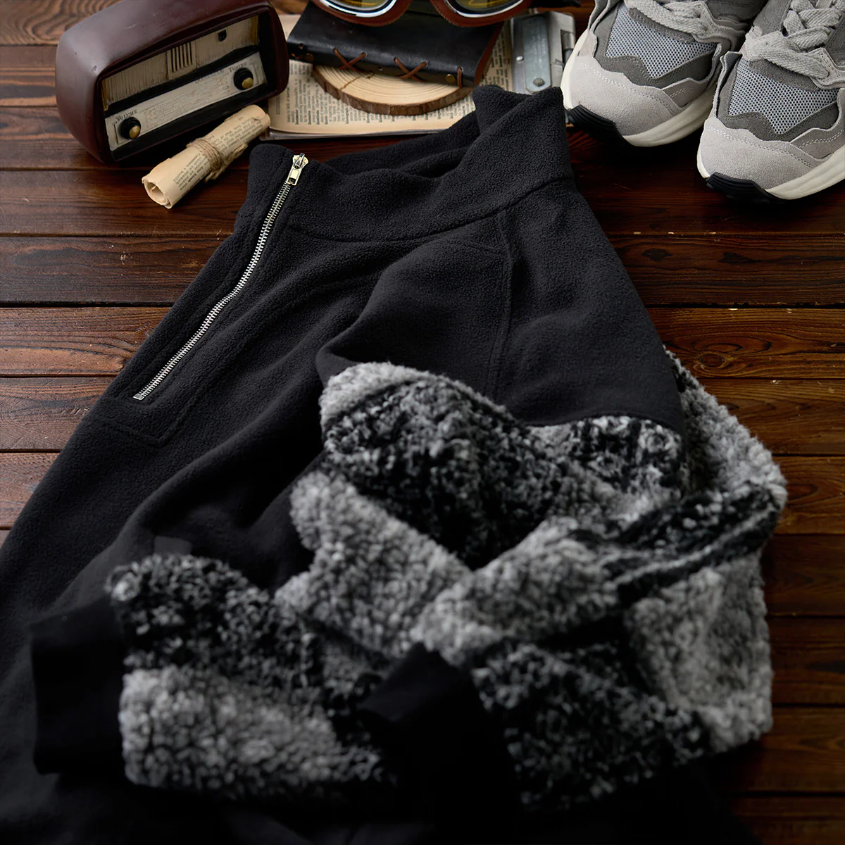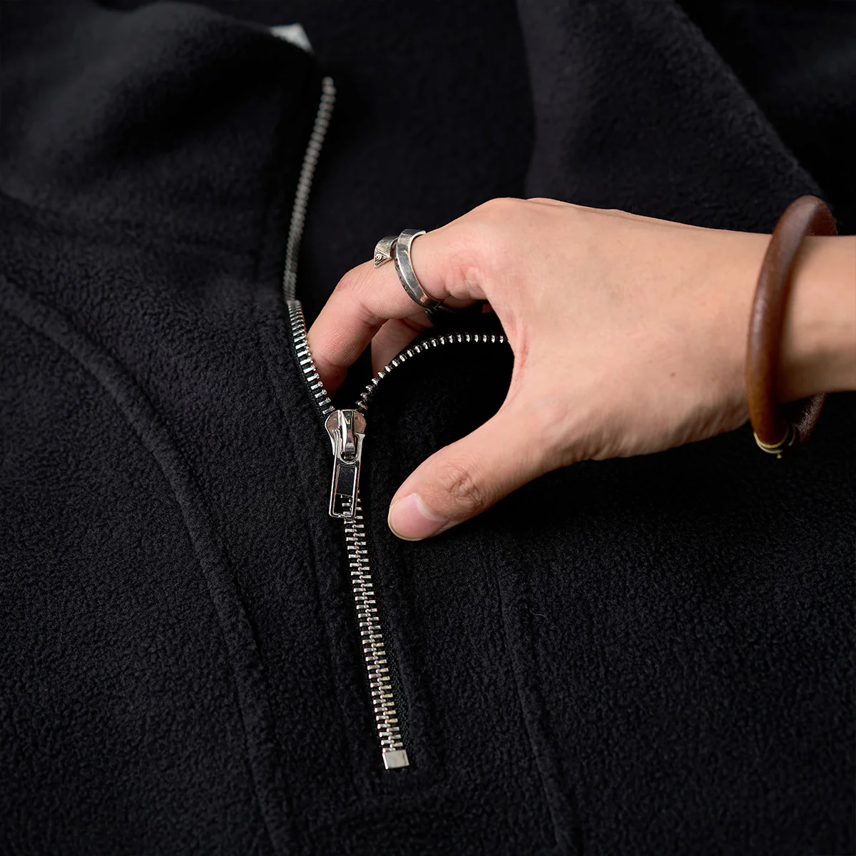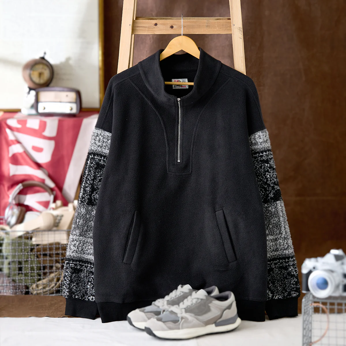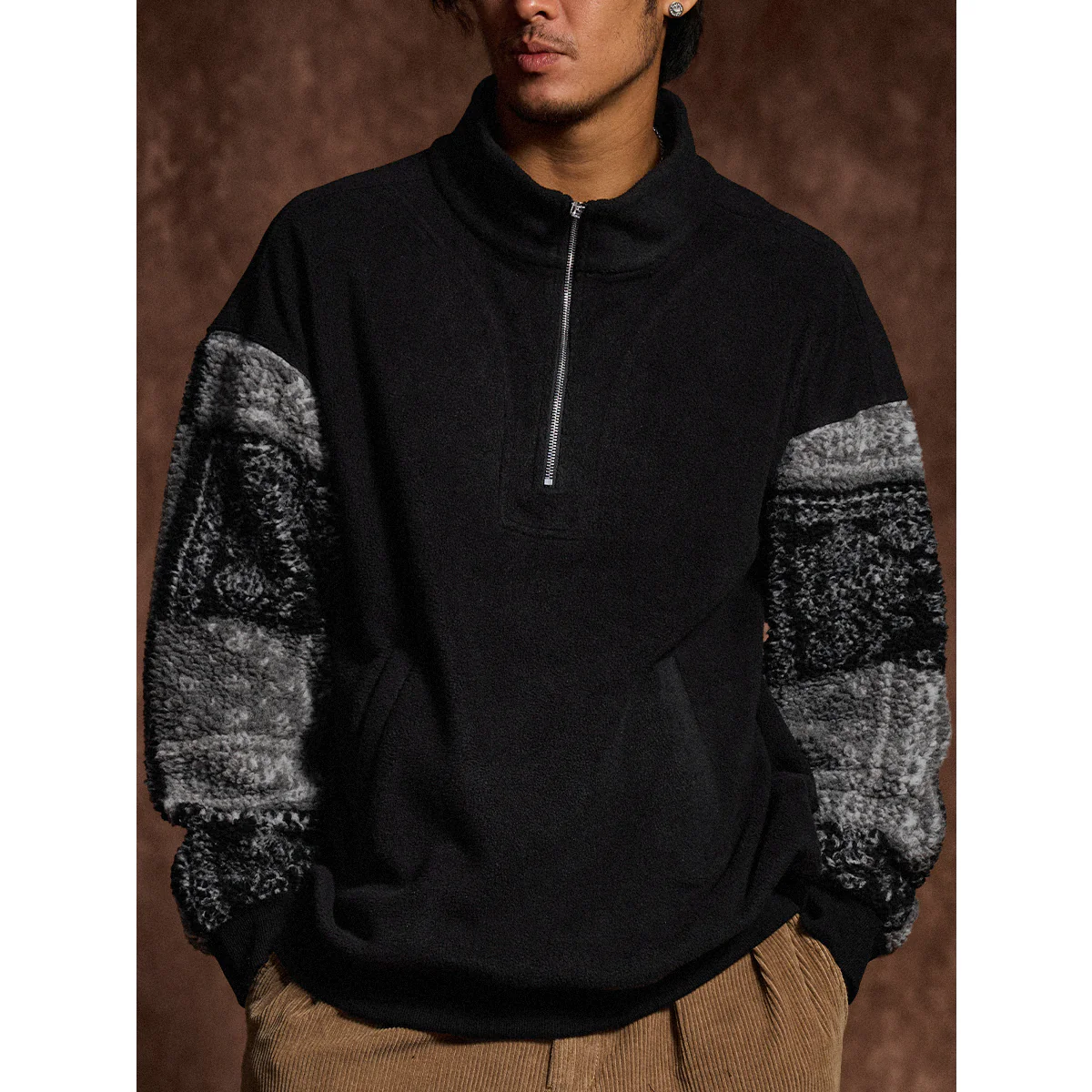 ハーフジップデザインは、着脱のしやすさとスタイリングの自由度を提供。ジップを開閉することで、カジュアルからスポーティな雰囲気まで調整可能です。