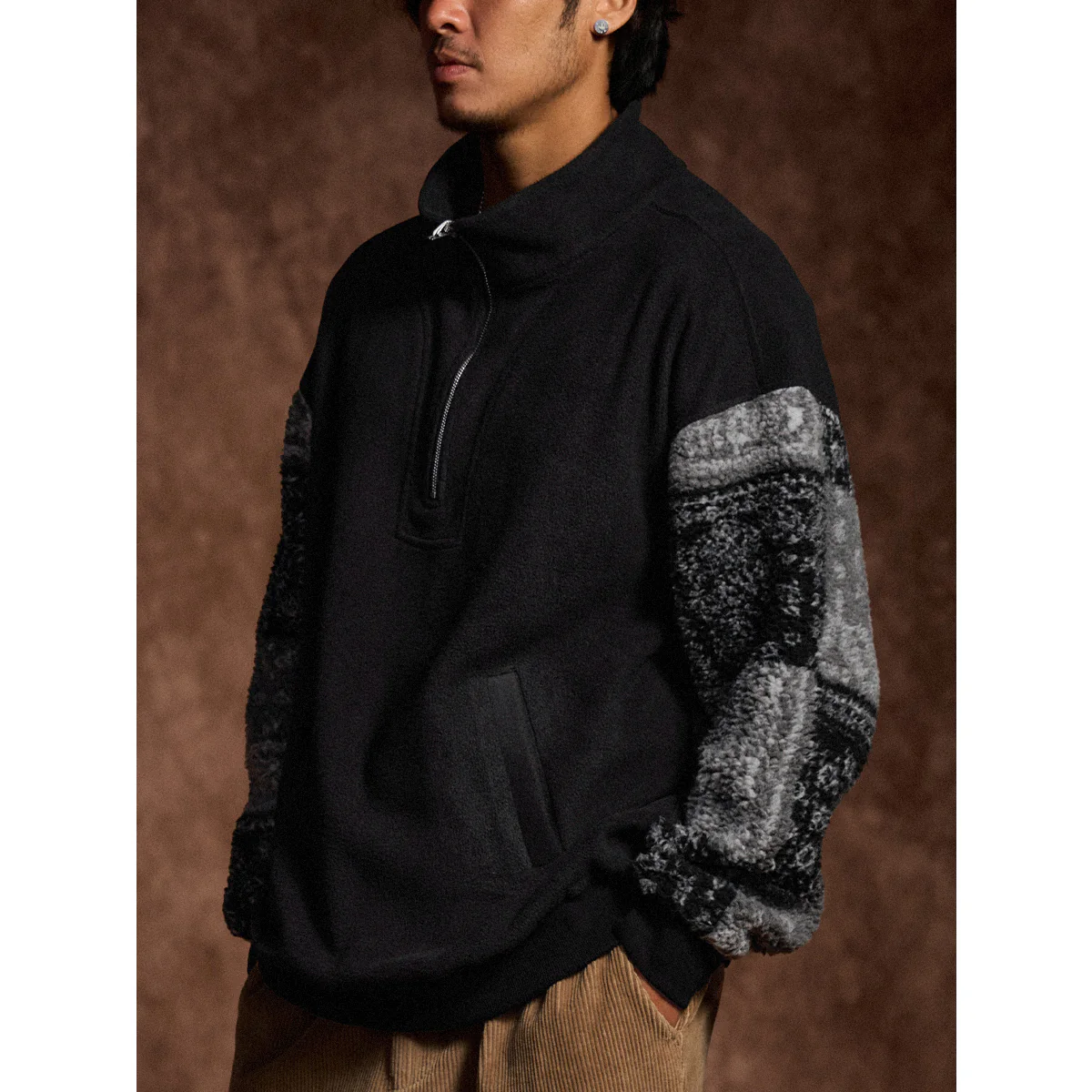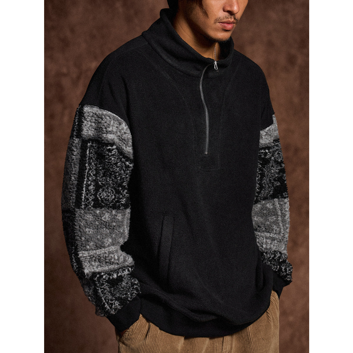 特徴:ハーフジップ/ペイスリー柄ボア