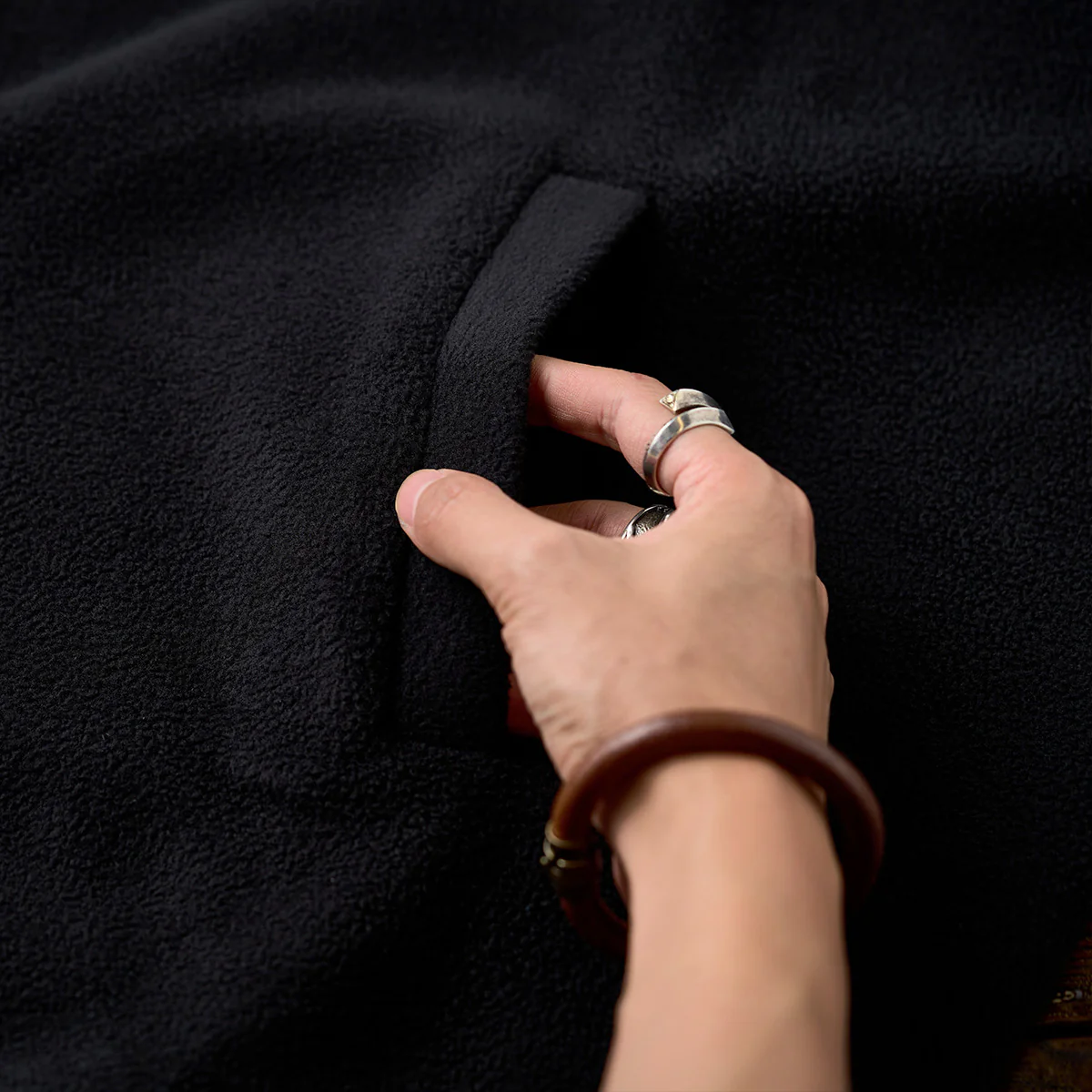 袖口にはリブが施されて、冷気の侵入を防ぎつつ、フィット感を向上させています。また、動きやすさも考慮されています。