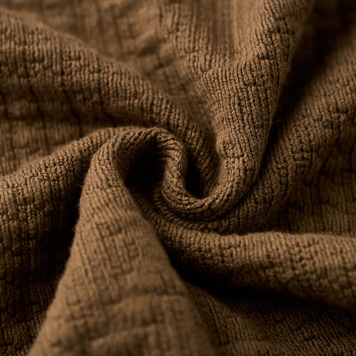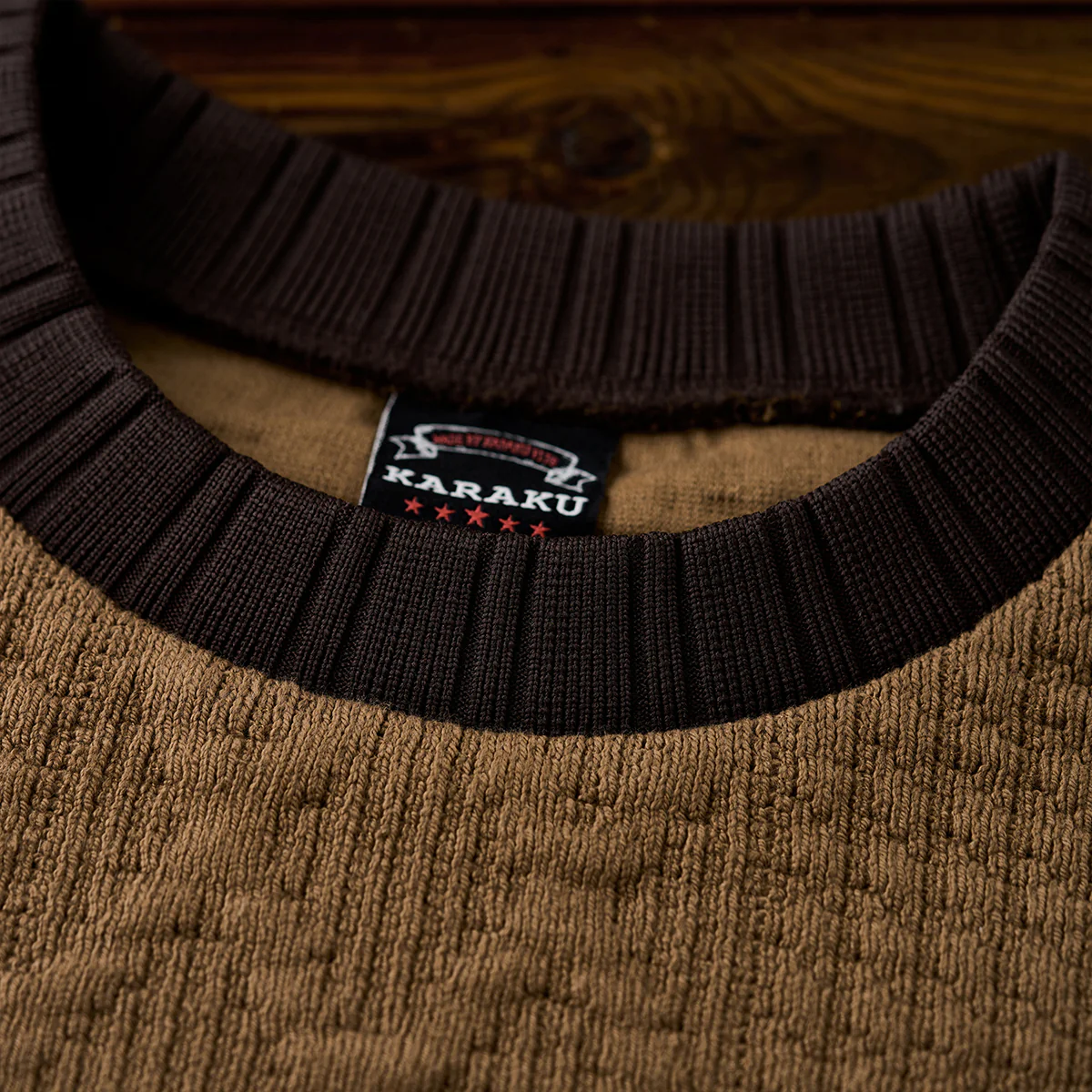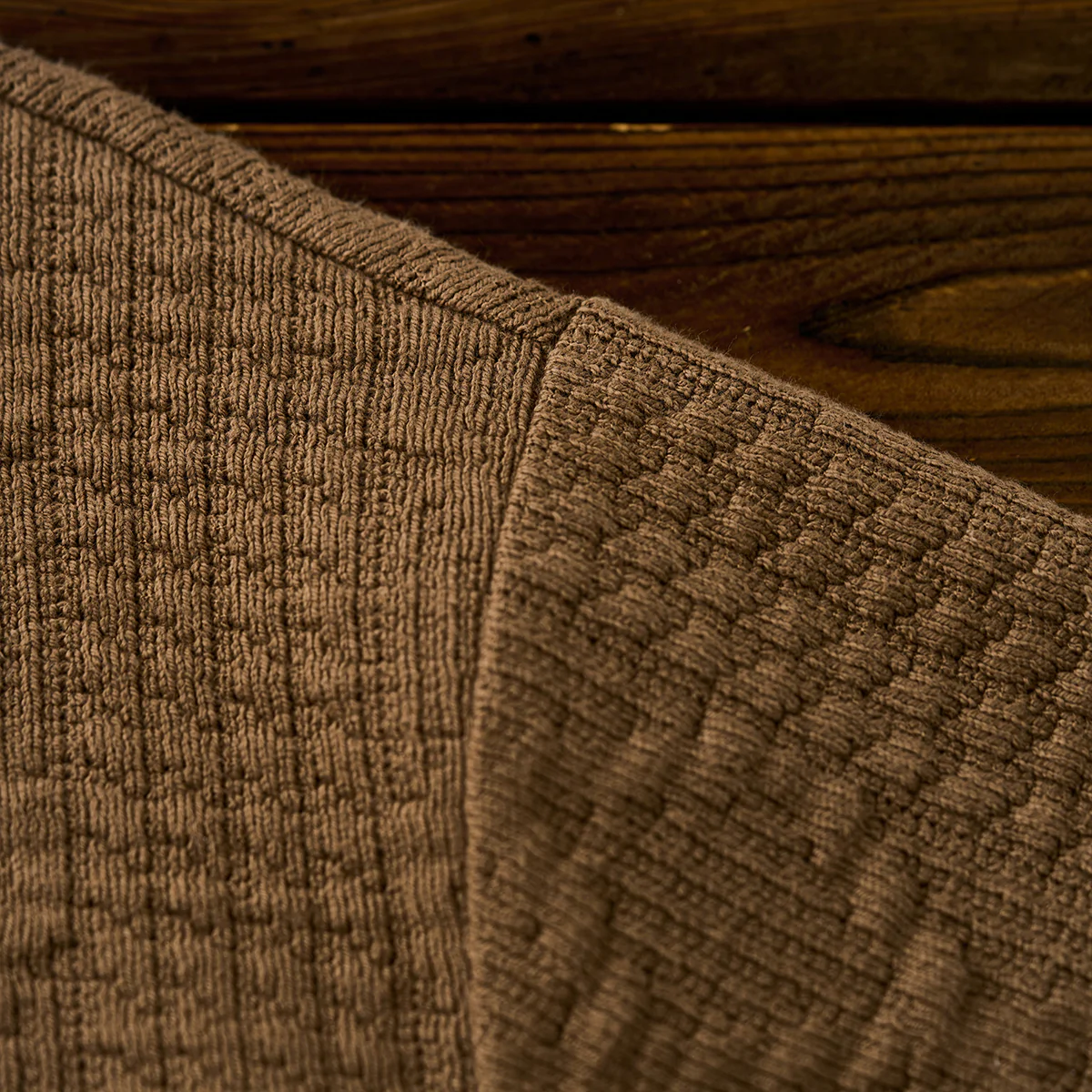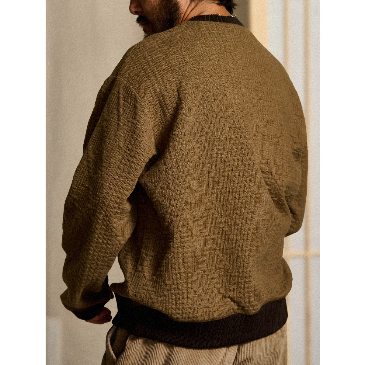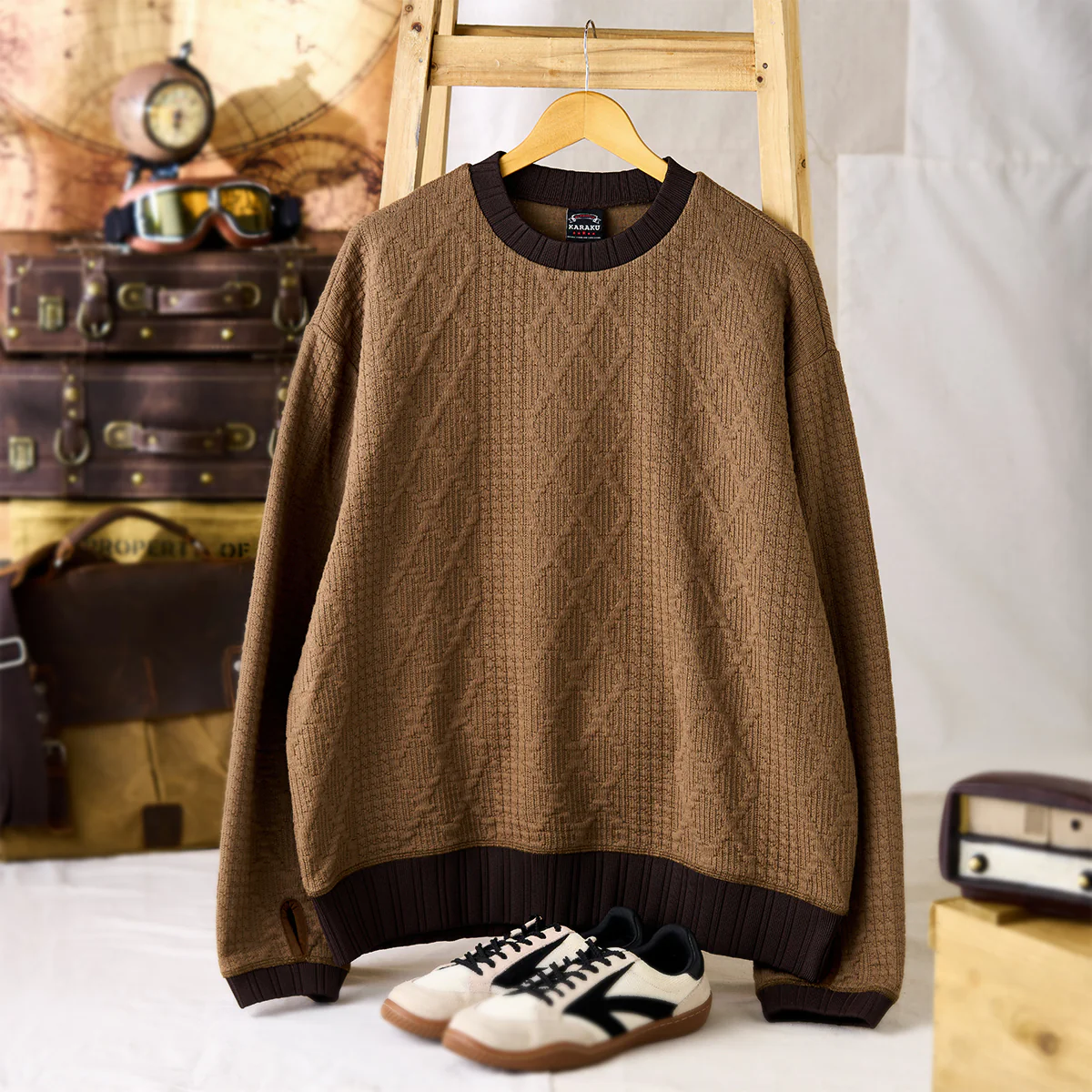 ケーブル編みニットを思わせる立体感のある編地を、スウェット素材で表現した一着。柔らかな着心地と扱いやすさを兼ね備え、デイリーに取り入れやすいデザインです。襟や裾に施した配色切替がアクセントとなり、シンプルながらもスタイリングに変化を加えてくれます。袖先にはサムホールを備え、アウトドアやアクティブなシーンにも快適に対応。ニットライクな表情とスウェットならではの実用性を融合させた、秋冬シーズンに活躍する万能スウェットです。
