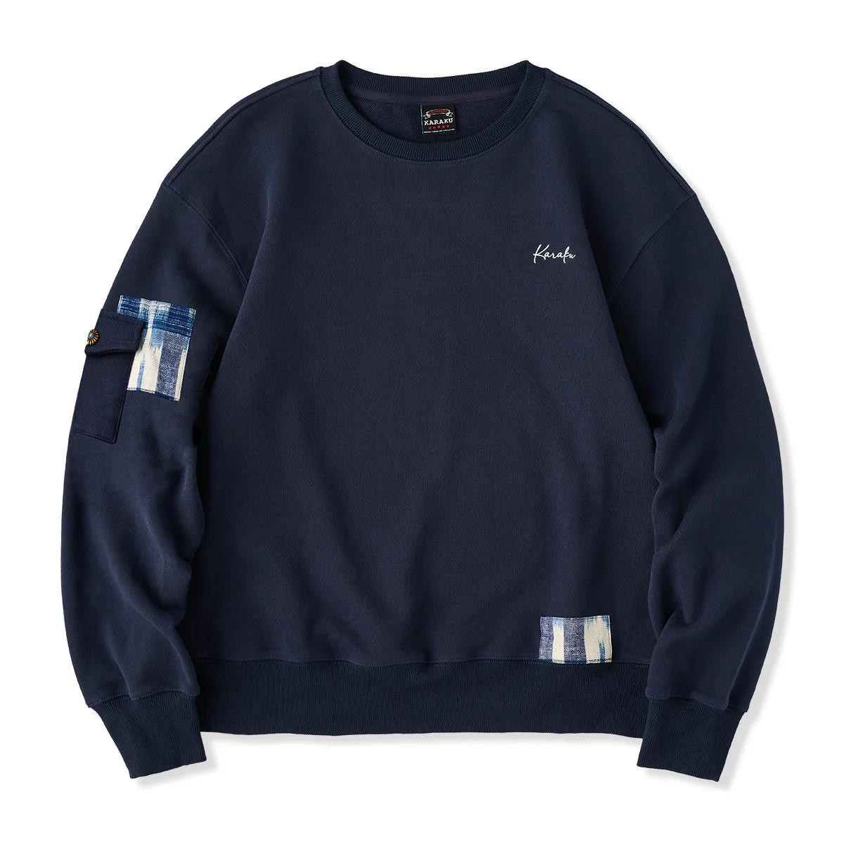 「karaku」刺繡&チェック柄パッチ ウォッシュ加工コットンスウェット