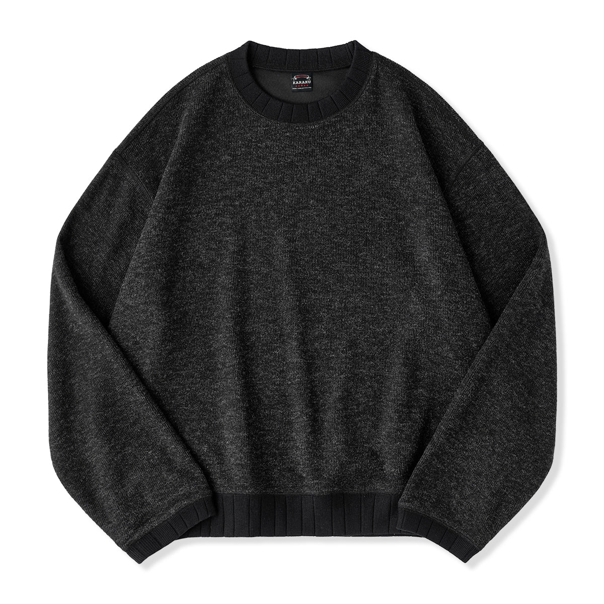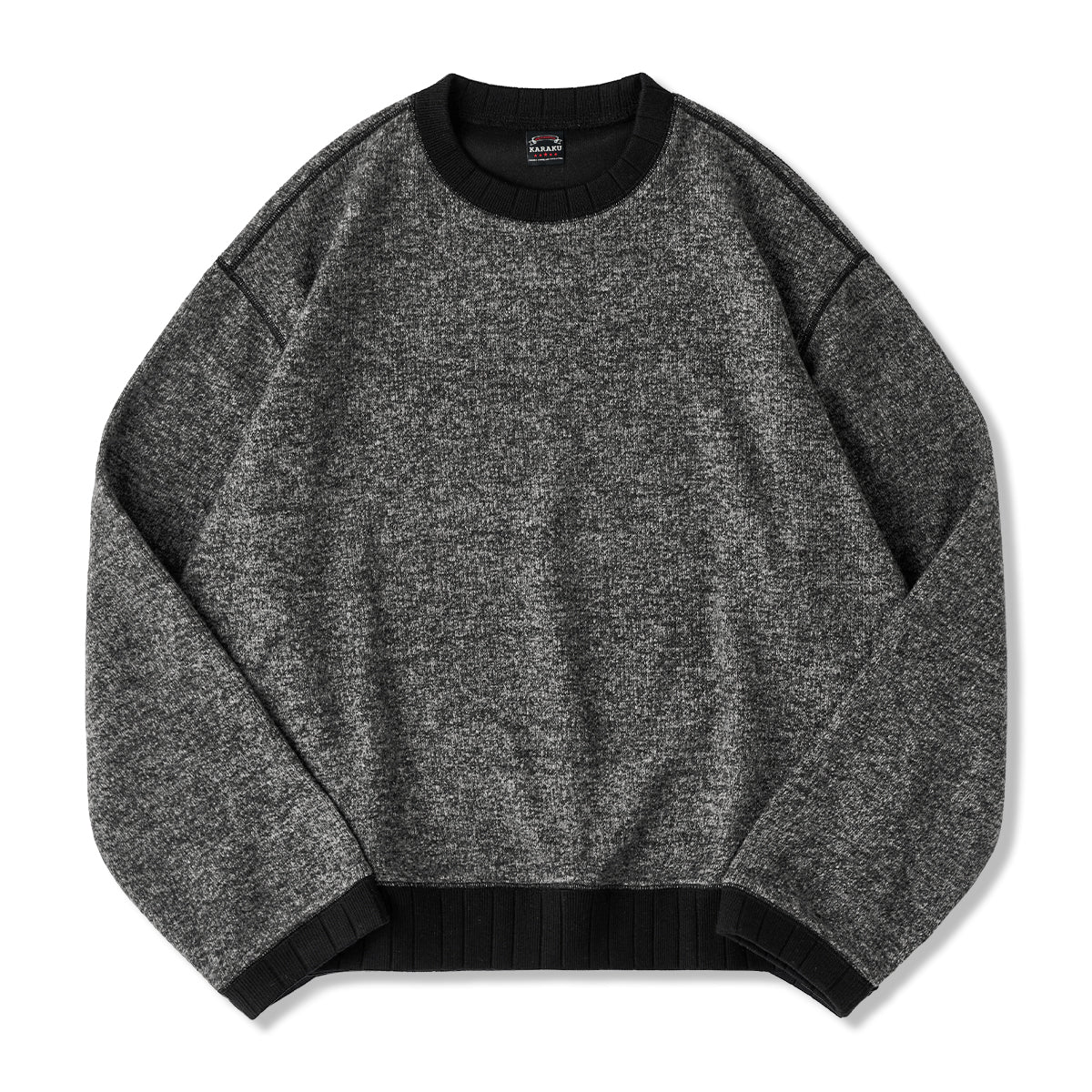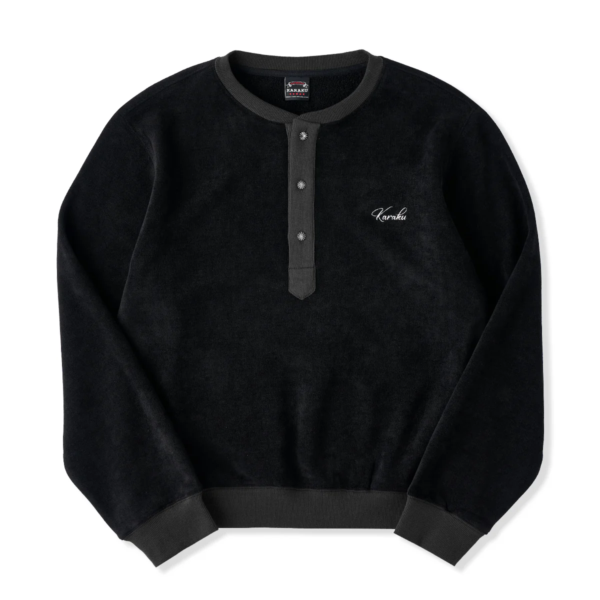 「KaraKu」刺繍入り 両面起毛フリースヘンリーネックスウェット