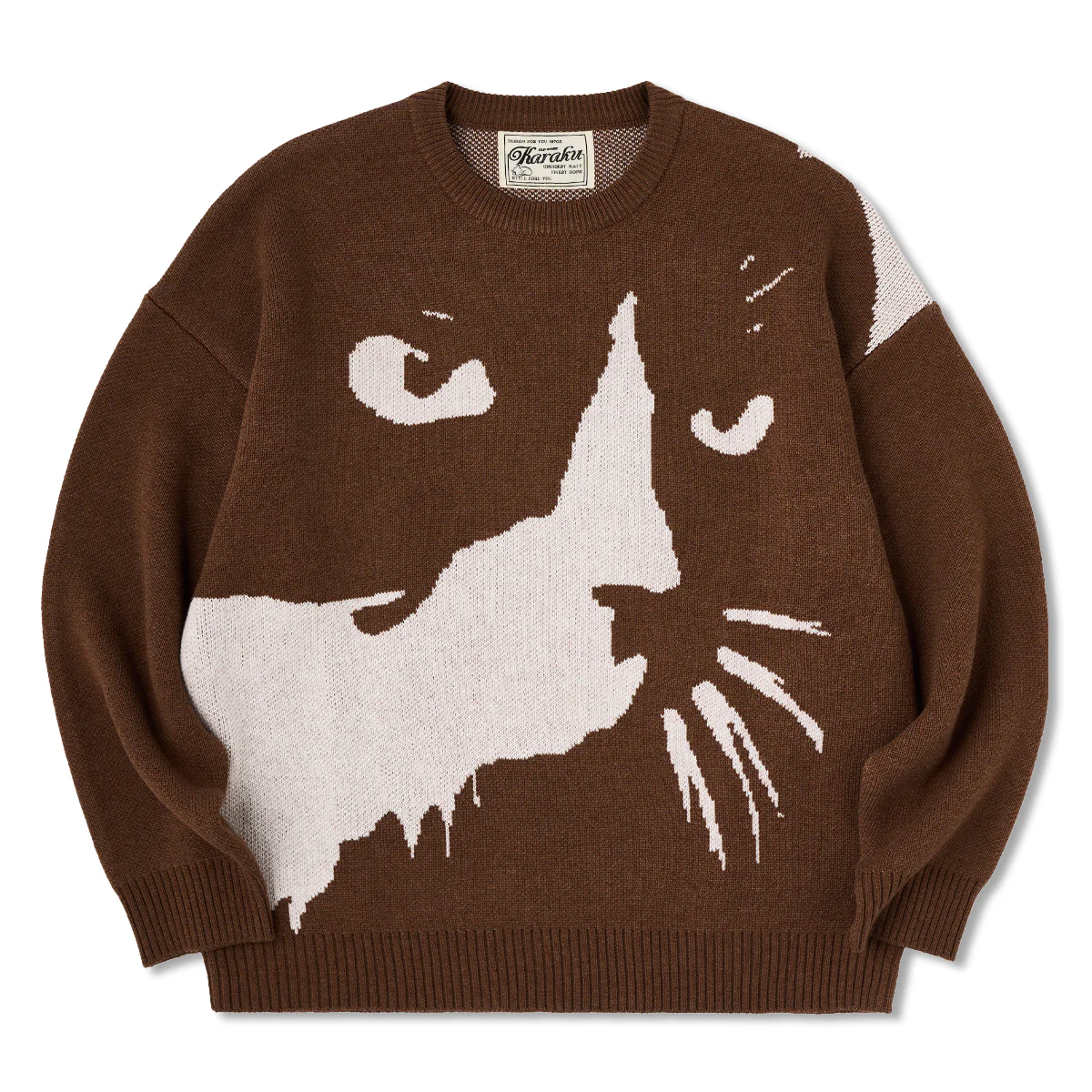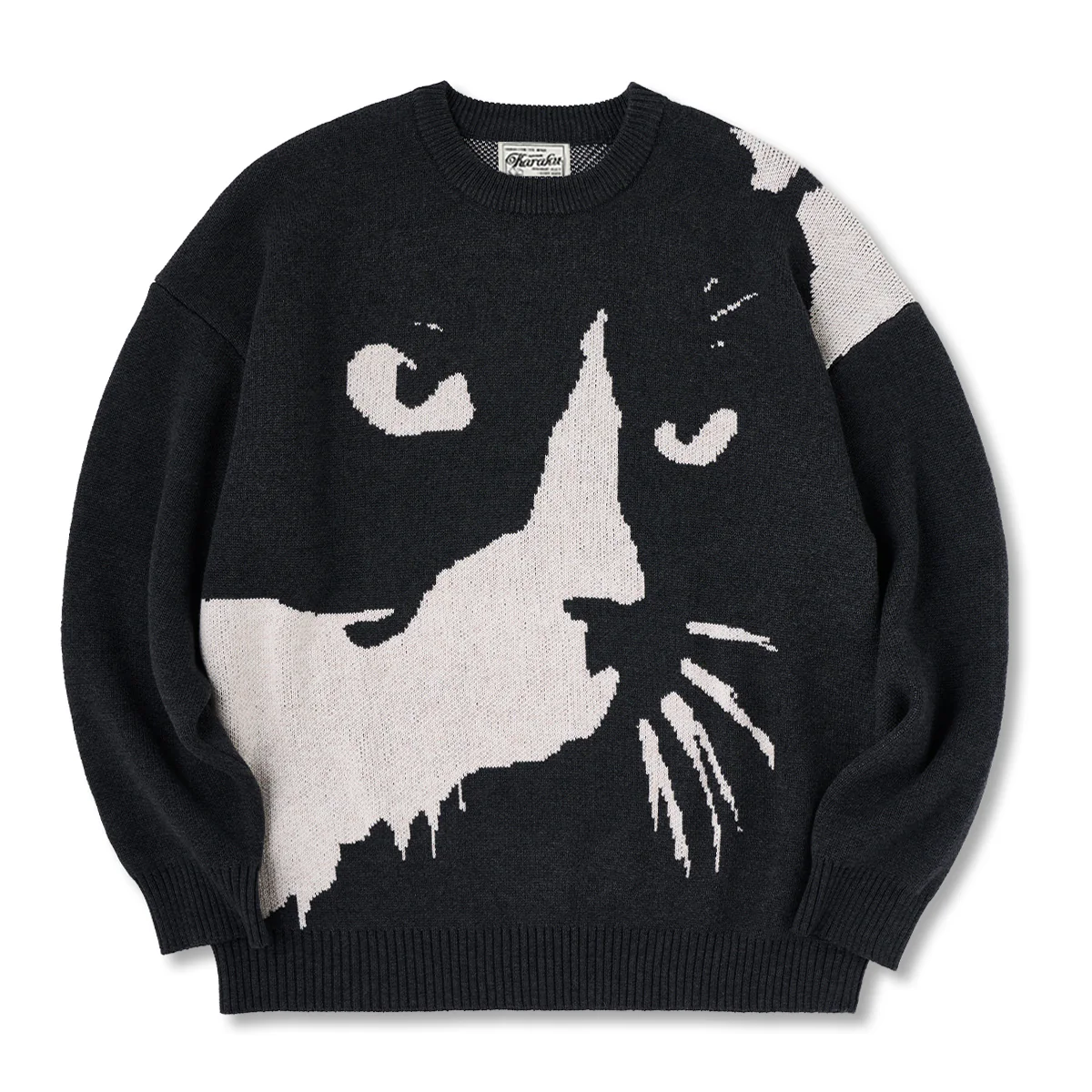 「夜闇に潜む猫」ジャカード織ウール混ニットセーター