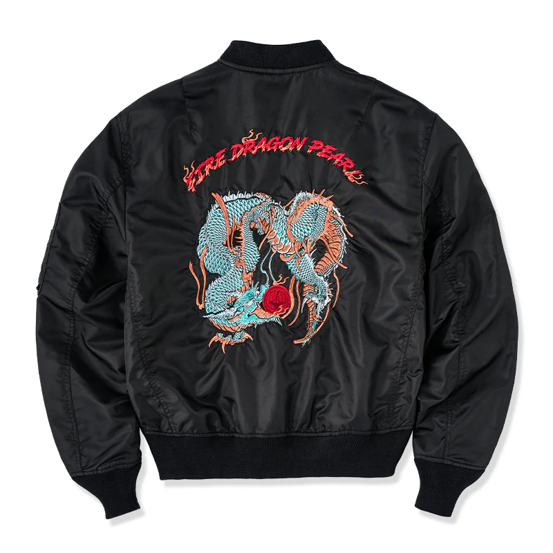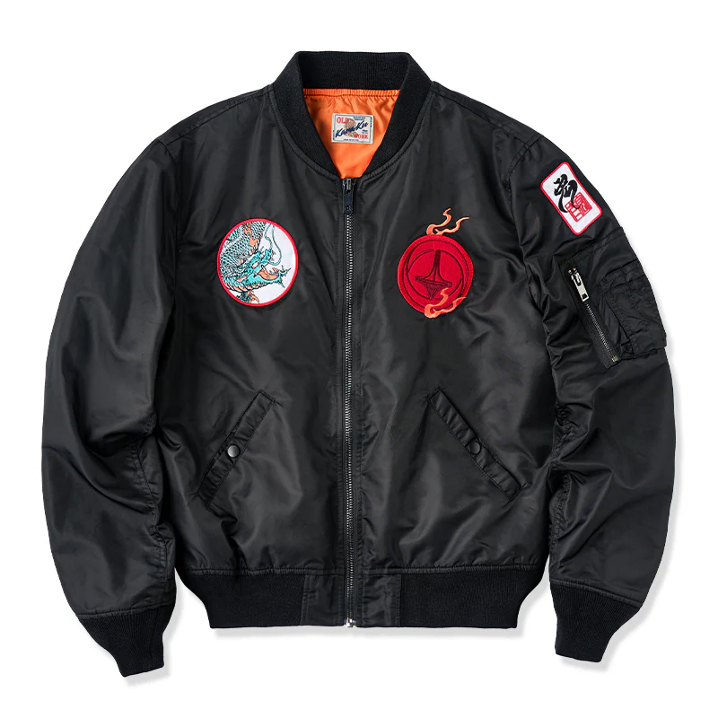 「KaraKux中坪宏太」咆哮している緑色の龍刺繡入り 浮世絵風フライトジャケット