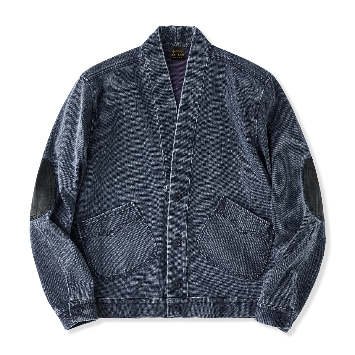 肘配色パッチ ウォッシュド加工剣道着風改良型半纏ジャケット