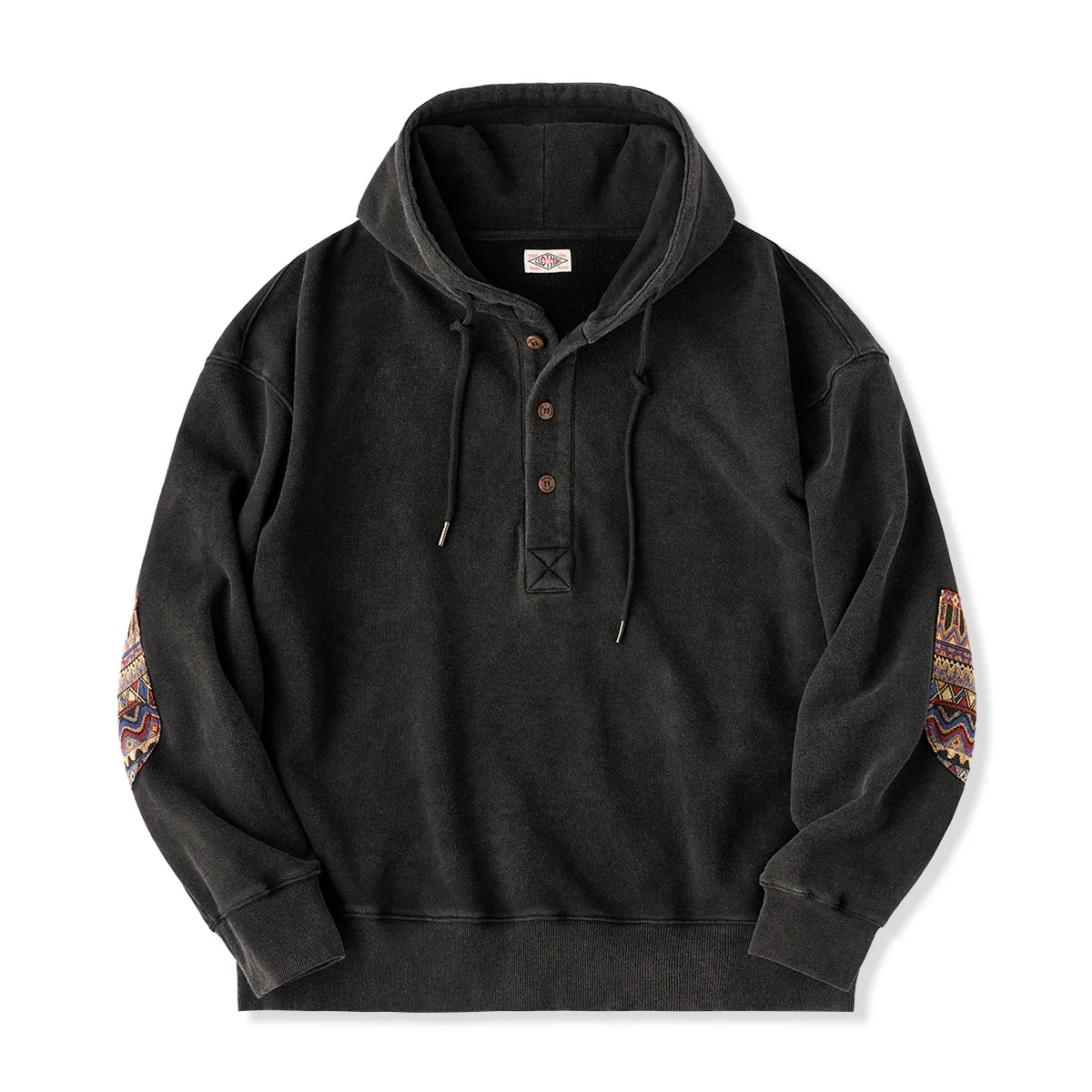 民族調ジャガードパッチ フード付き3つボタンプルオーバー