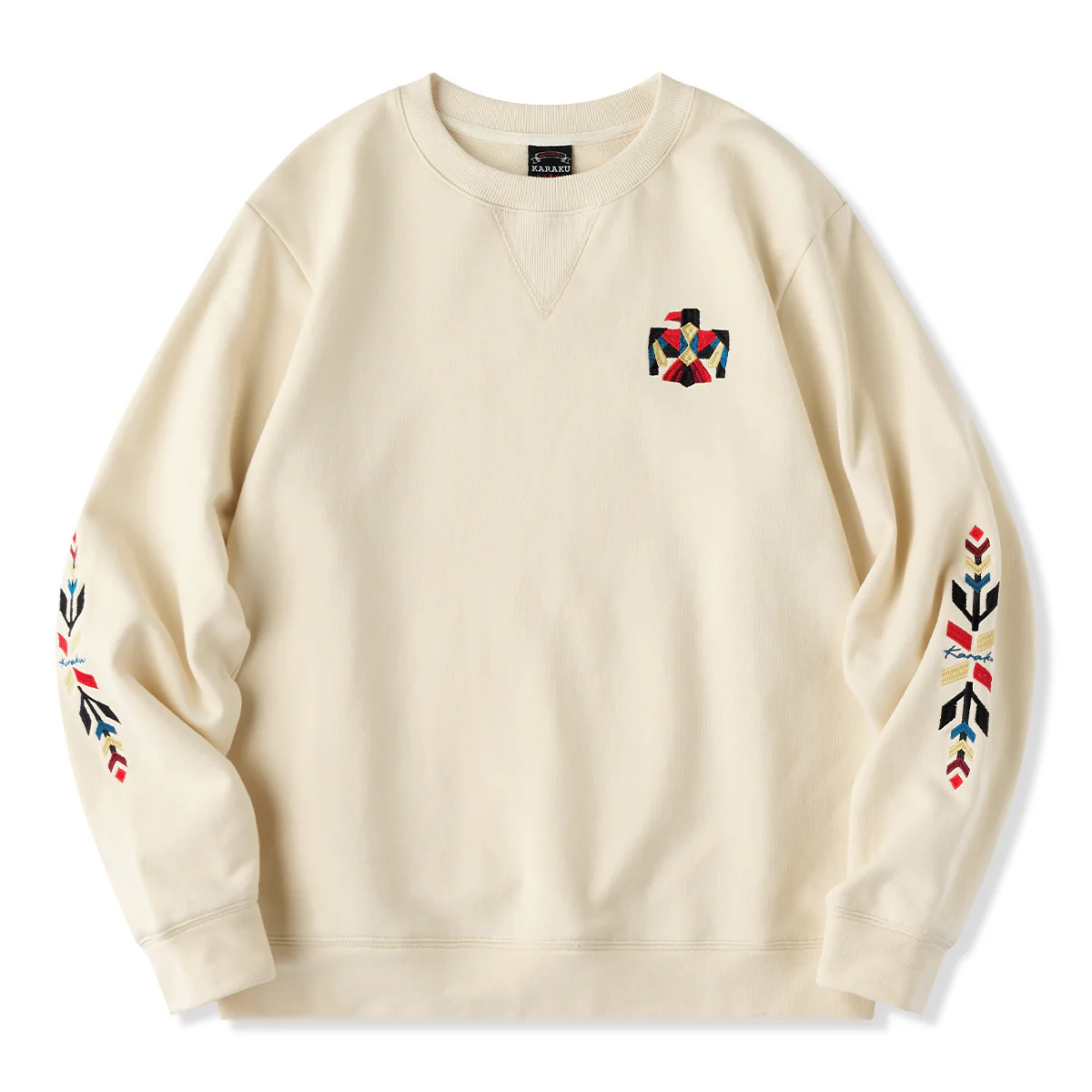 「ナバホ&サンダーバード」柄刺繍入り Vガゼットコットンスウェット